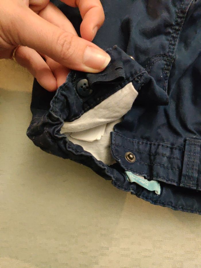 Pantalon pour bébé de 6 mois Bleu marine 100% coton Intérieur doublé Élastique pour adapter la taille Bouton de fermeture à pression Très bon état