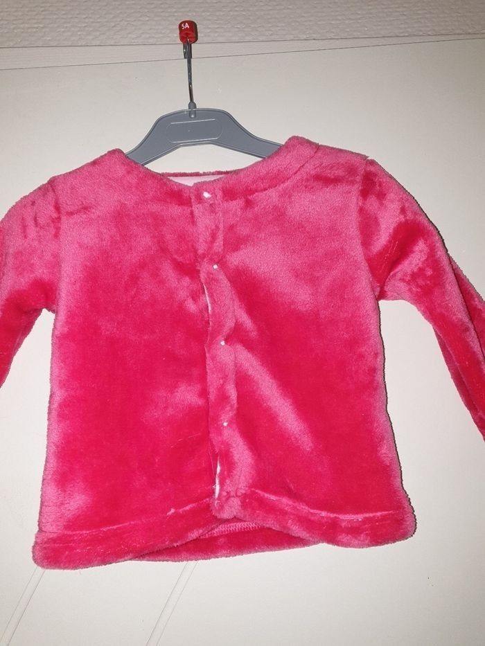 Joli cardigan en maille peluche polaire fushia 6 mois toux doux et bien chaud. Petites pressions sur le devant Neuf juste lavé Marque U Tout petit (Super u) #6moissevy57