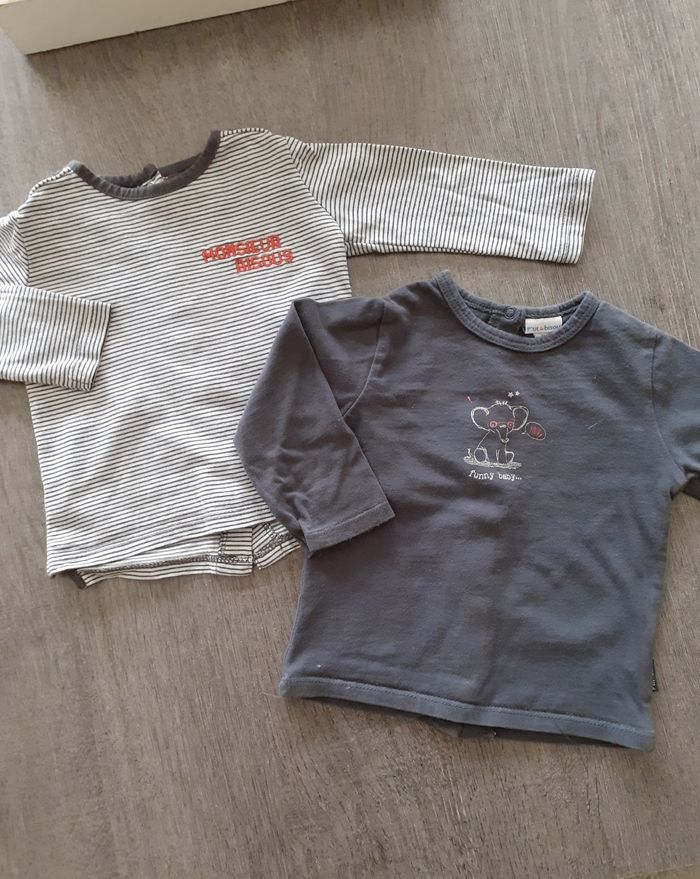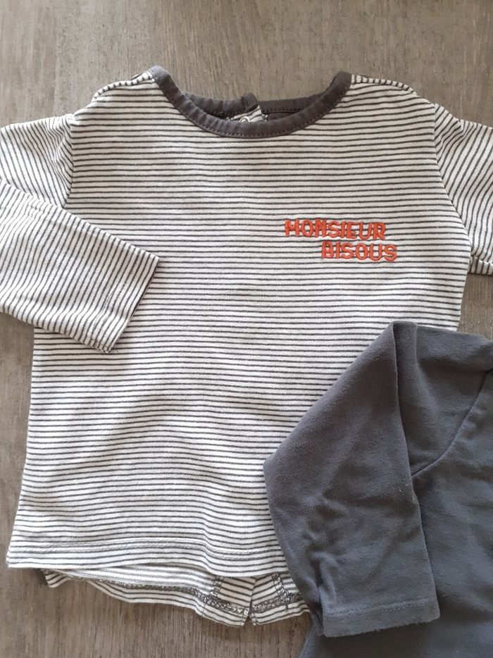 Lot de 2 t-shirts manches longues en très bon état. Ptit Bisous et Kiabi