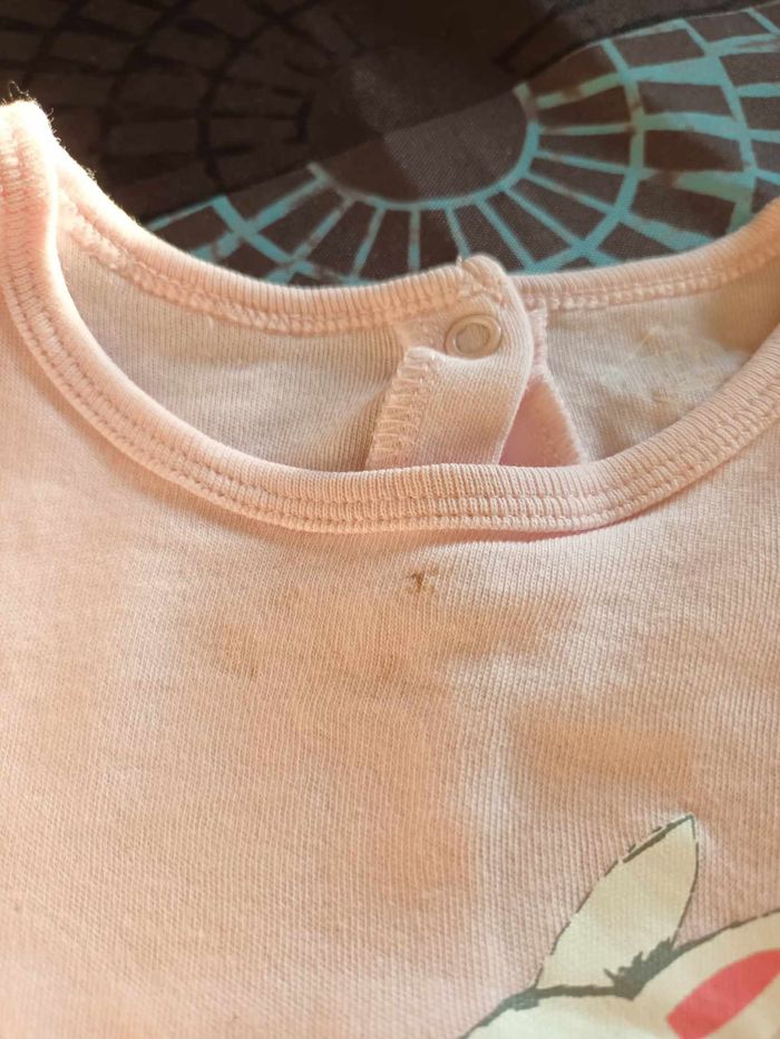 pyjama fille 18 mois couleur rose motif lapin marque tex pieds anti derapants bon etat car taché a plusieurs endroits (voir photo)