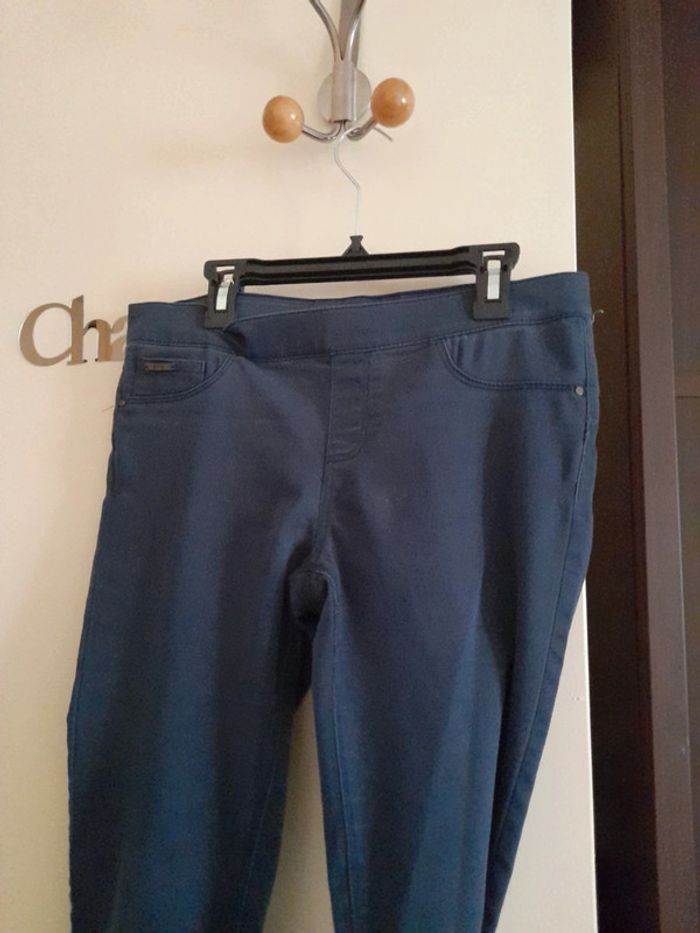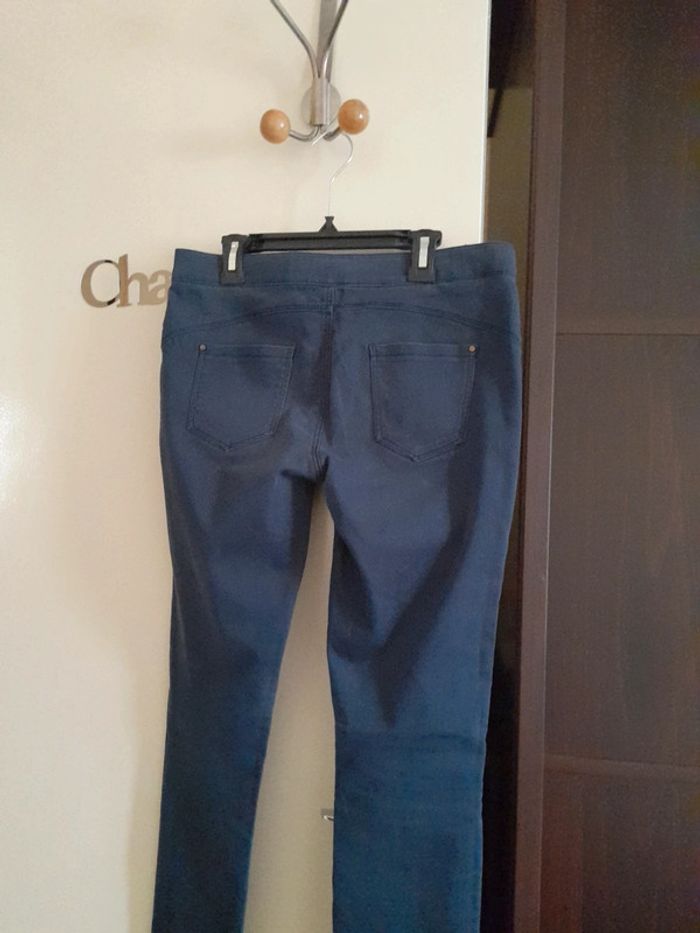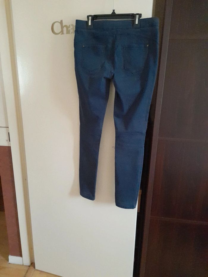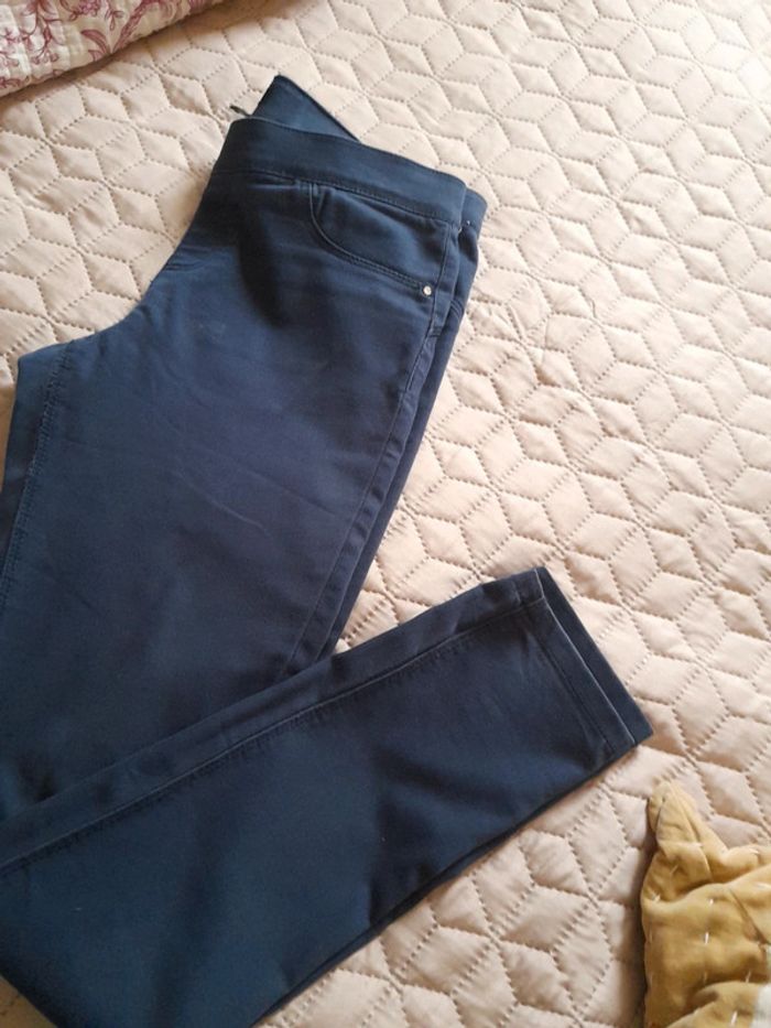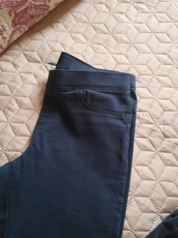 Pantalon bleu, marque Jennyfer taille 38 en bon état. Ceinture elastique.3 poches.