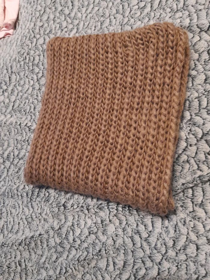 Écharpe tube double tour de cou en laine. Bon état sans marque couleur marron clair