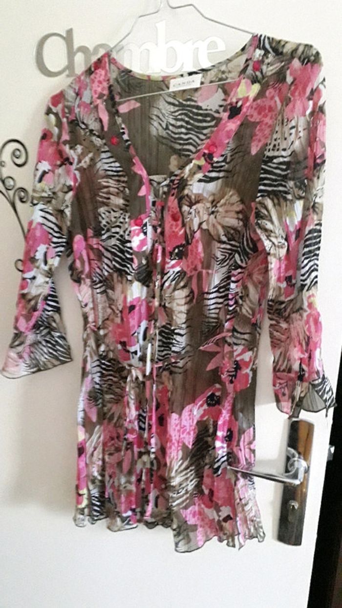 Tunique C&A ,taille 42,en très bon état, manches 3/4, transparente, longueur 73 cm. 100% polyester. Reduction activé. Accepte offre prix unité et lot. #noite66_tuniquefemmeété42