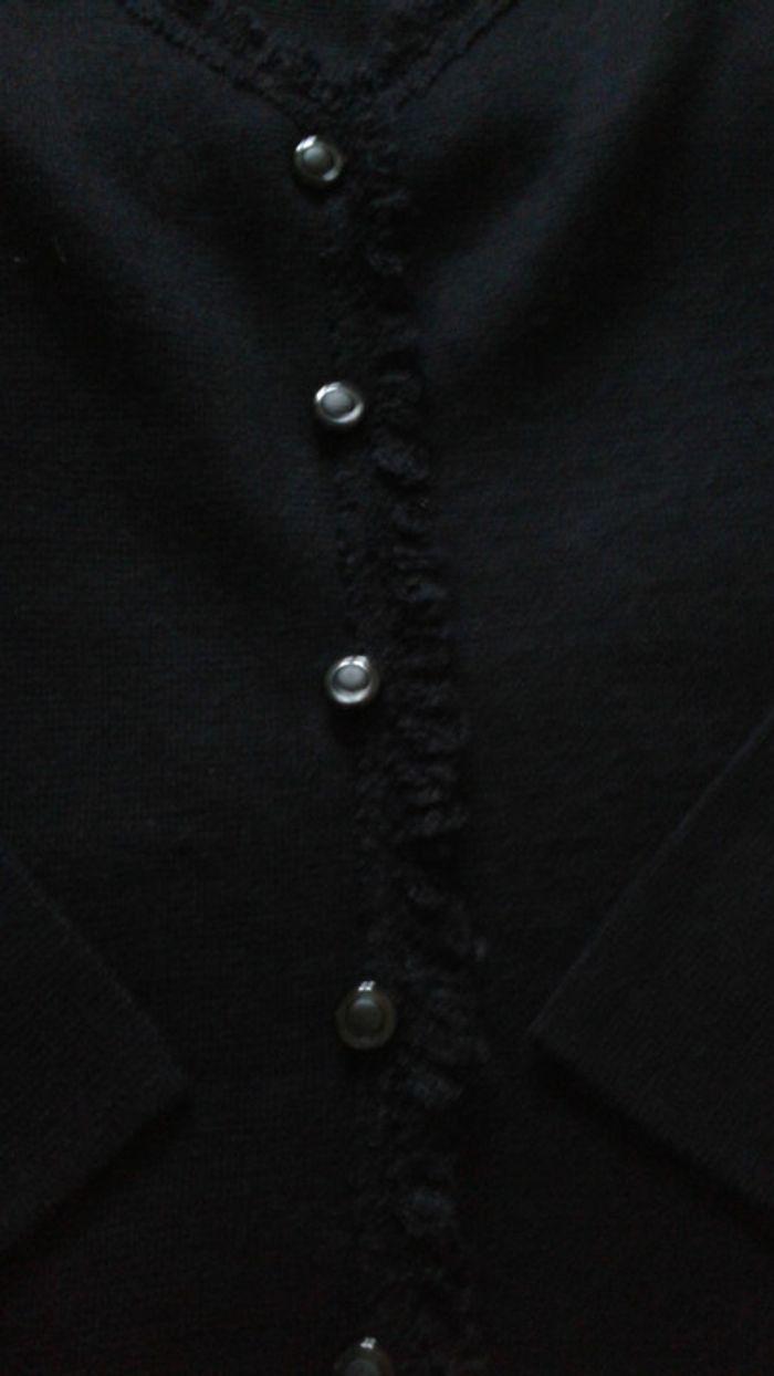 veste noir en maille (un peu épaisse ) taille S (taille un peu grand ) marque C&A , en bon état fermeture boutons , longueur 66 cm , 2 poches plates ,100% acrylique