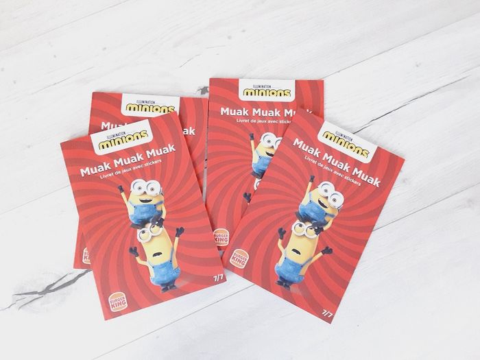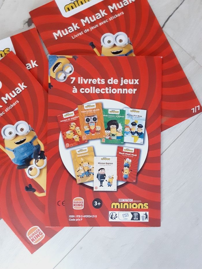 Lot 4 livrets Burger King Les minions Muak muak muak 7/7 jeux et stickers  Neufs