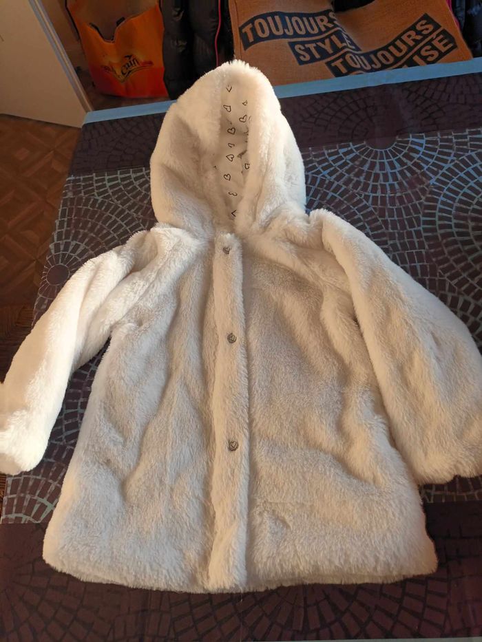 blouson en doudou fille 18 mois marque orchestra couleur blanc pressions et fermeture tres bon etat