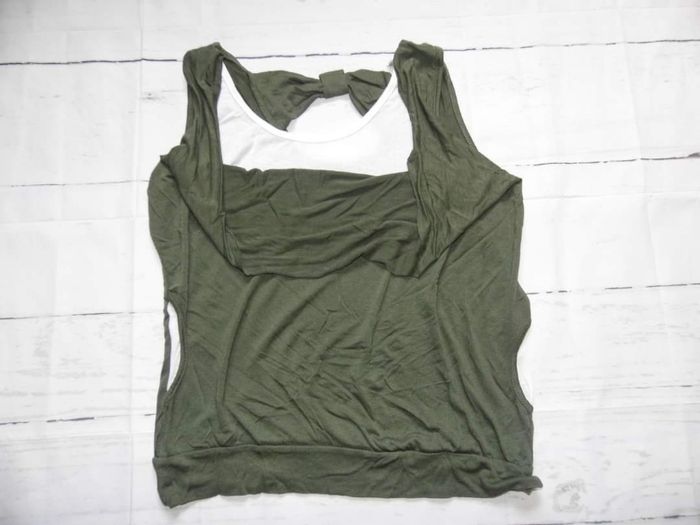 Bonjour 👋 Je vend ce : 👉 débardeur femme taille 38 Couleur kaki et blanc Juste laver pas porter Maison 🏠 non fumeur et sans animaux