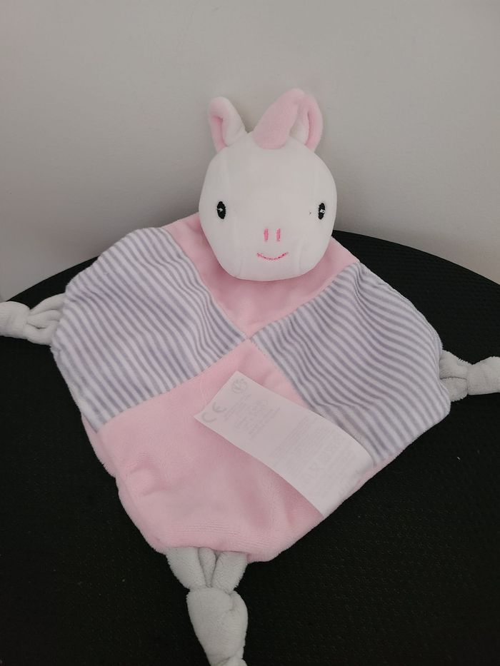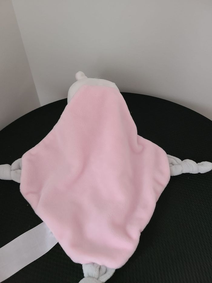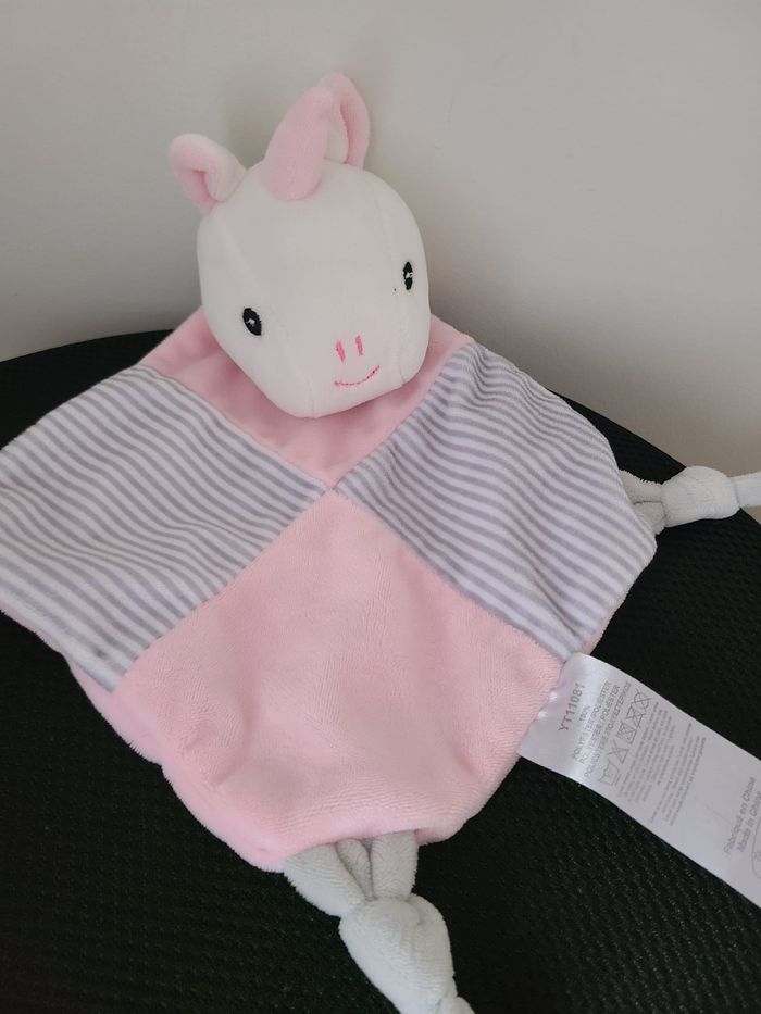 Doudou plat Licorne grelot rose blanc rayé gris TOM & KIDDY 23