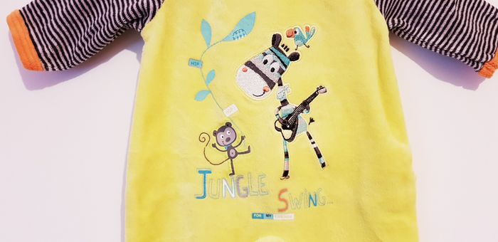 Joli combinaison multi-couleurs en velours toute douce avec broderie animaux sur le devant et un revers rayé sur la bas. Ouverture pressionnée au dos et pont de la combinaison. 👶 Taille : Naissance (0 mois) 🧶 MATIÈRE : 76% coton, 24% polyester ❌ Comme Neuve car porté 1 fois 🎀 D'autres articles sont disponibles dans mon dressing 🤩 N'hésitez pas à regarder 👀 afin de limiter les frais d'envoi 😉 #kat02600bbgarconnaissance #kat02600orchestra #orchestragarconnaissance #combinaisongarconnaissance #naissancegarcon #hivergarconnaissance ✔ Abonnez-vous à mon dressing 💗 des mises en lignes sont faite régulièrement Bon shopping 🛍