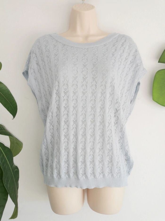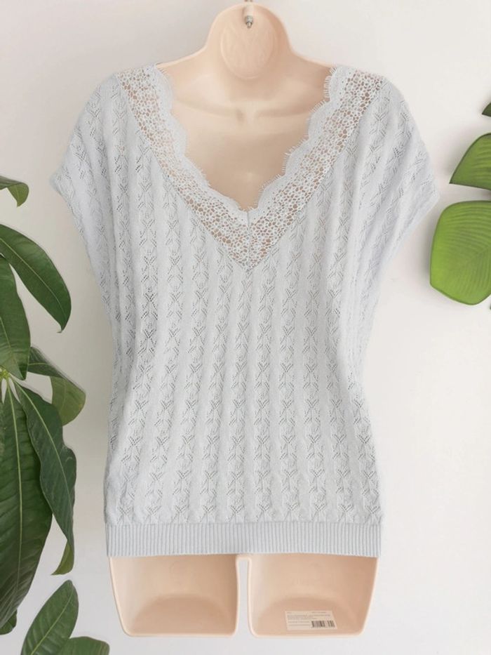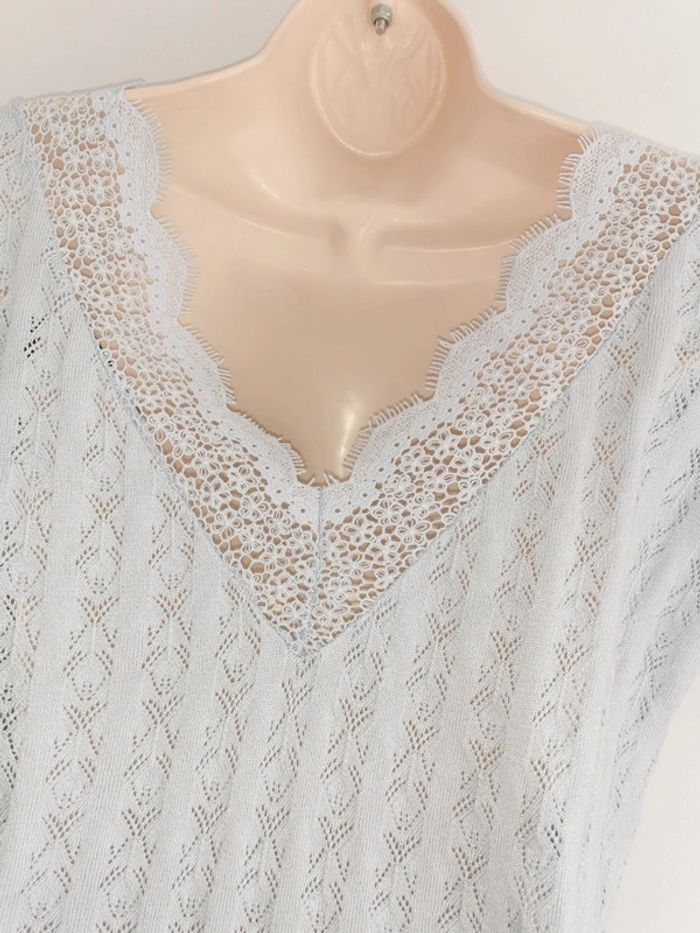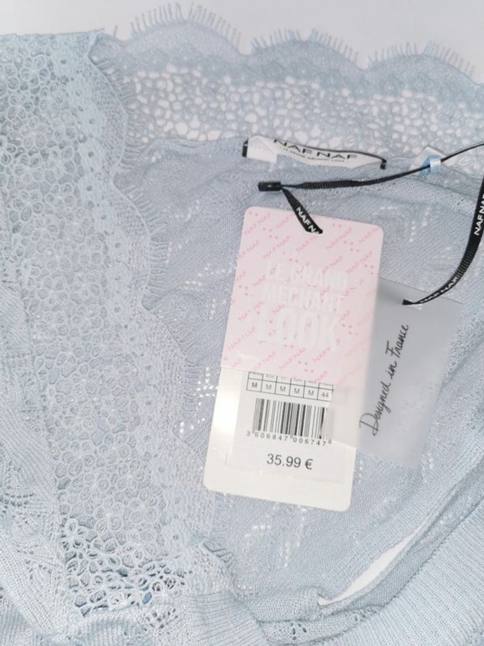 Top ajouré bleu ciel Naf Naf dos decolleté en dentelle Taille M - photo numéro 2