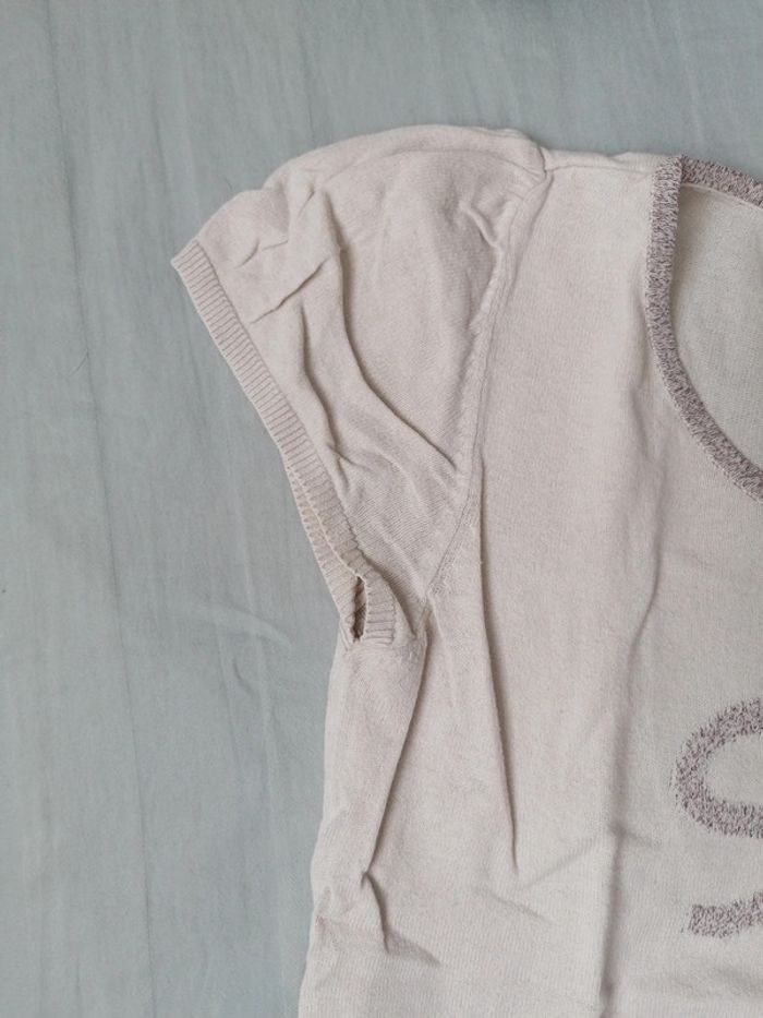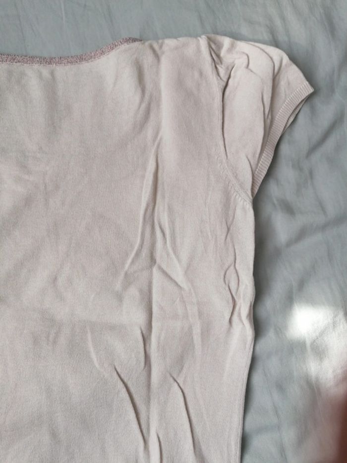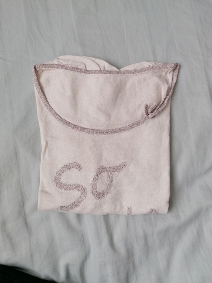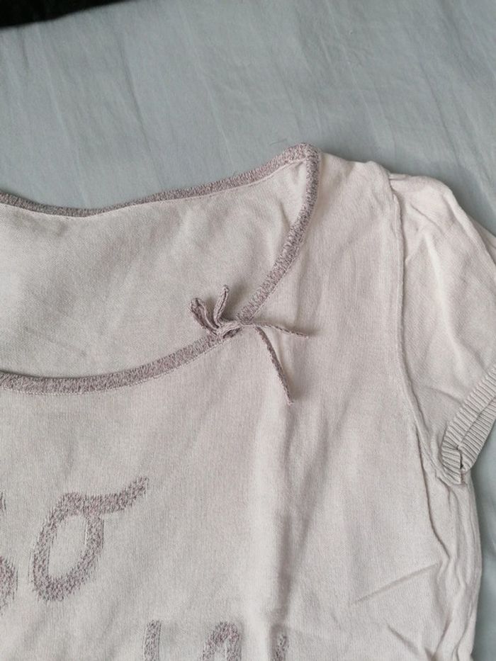 Tee shirt femme rose claire en taille 38. Col et écriture avec paillete rose rouge. État impeccable pas de trou ni de déchirures.