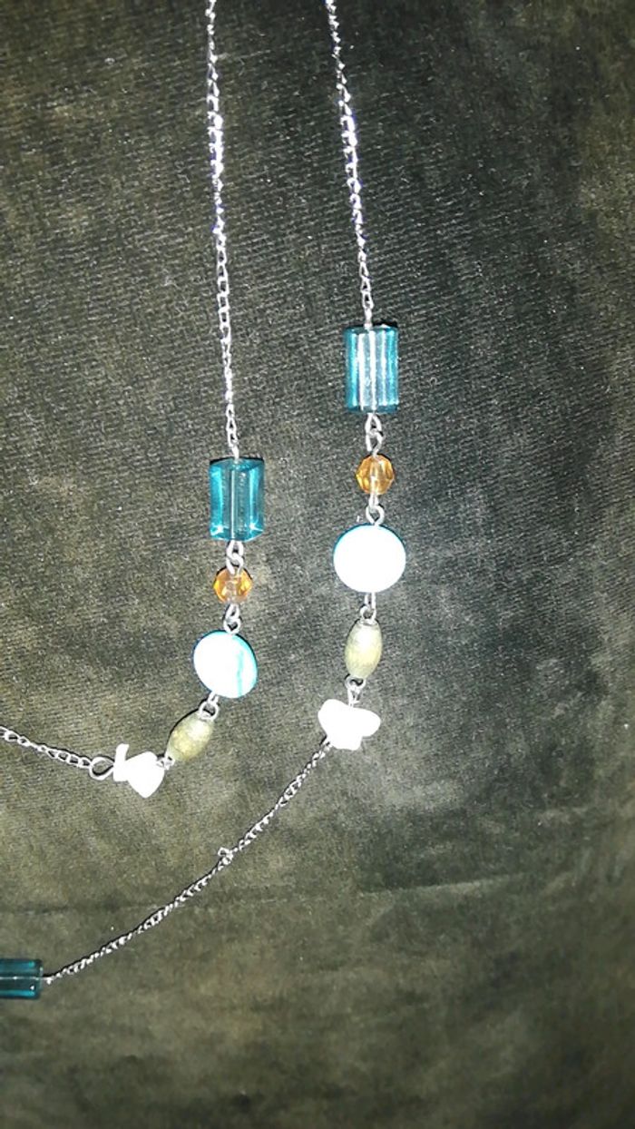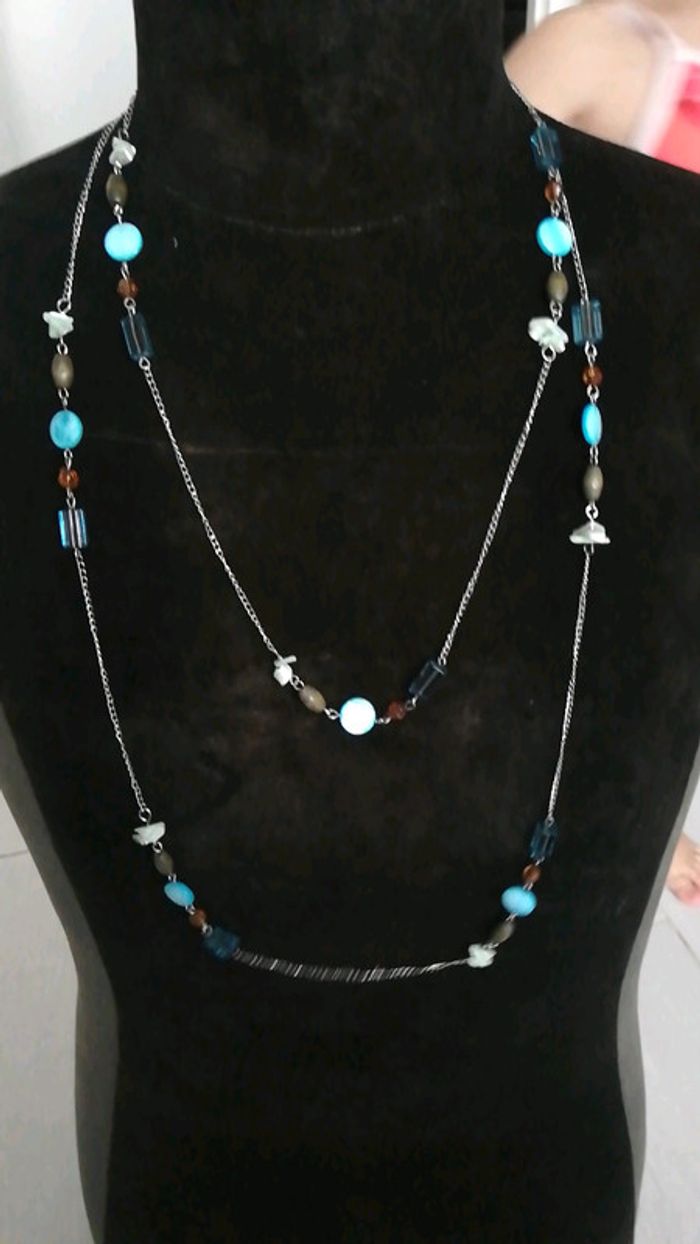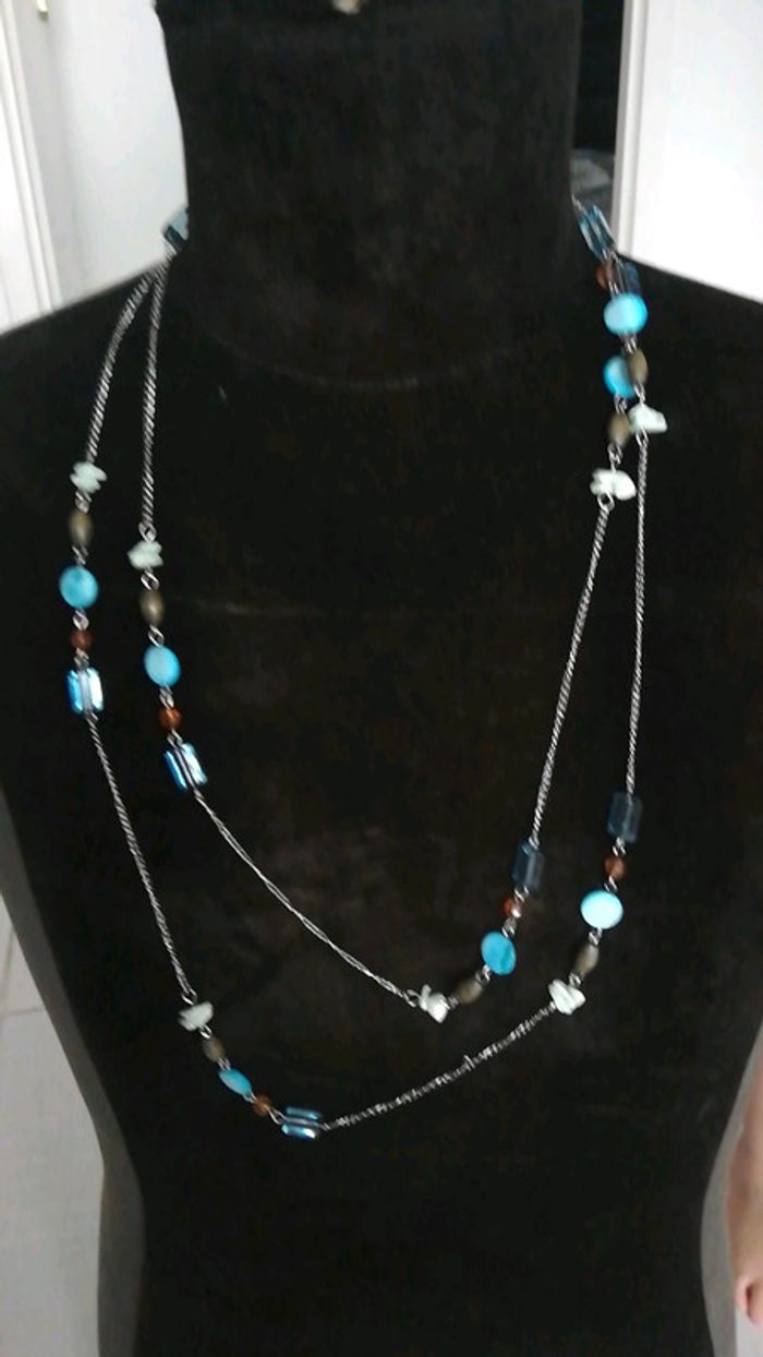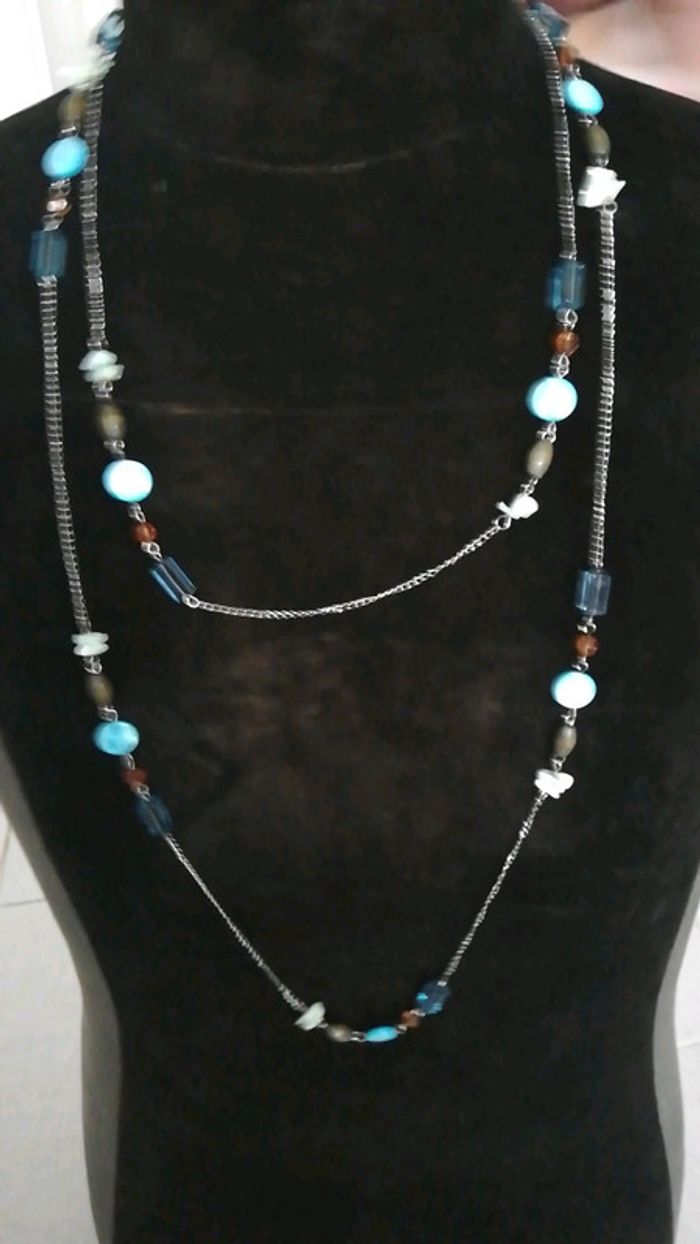 Collier fantaisie femme couleur argent marron et bleu turquoise
