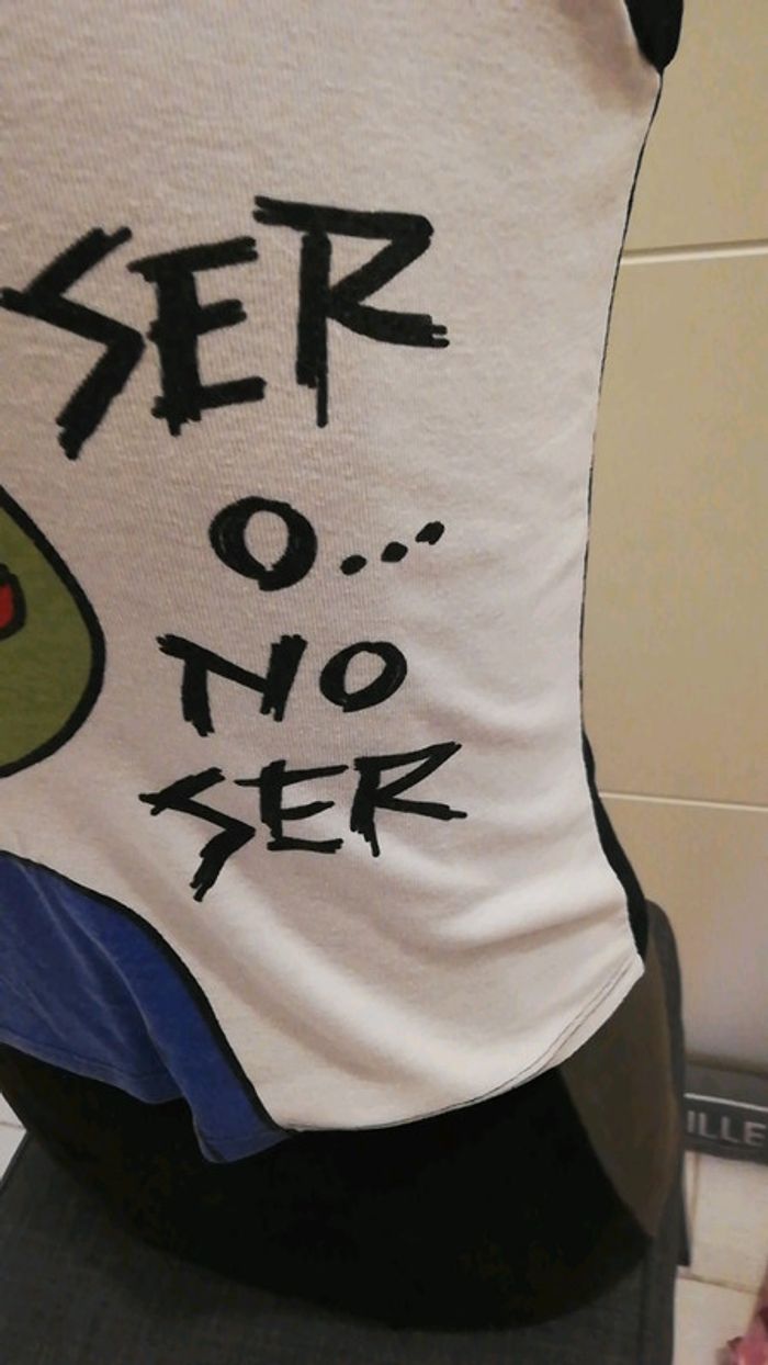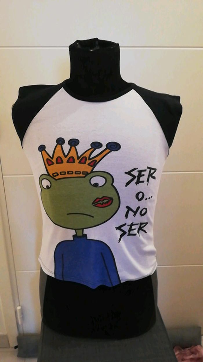 Tee shirt fantaisie femme acheté en Espagne couleur blanc et noir. Jamais porté