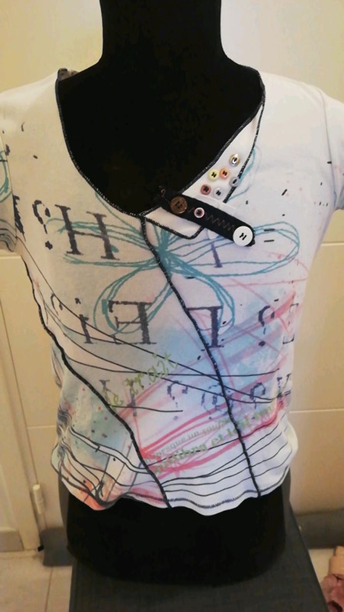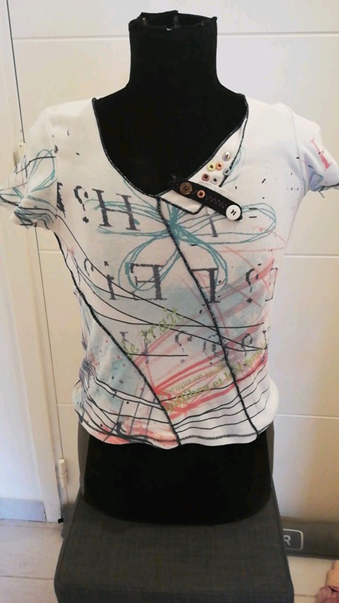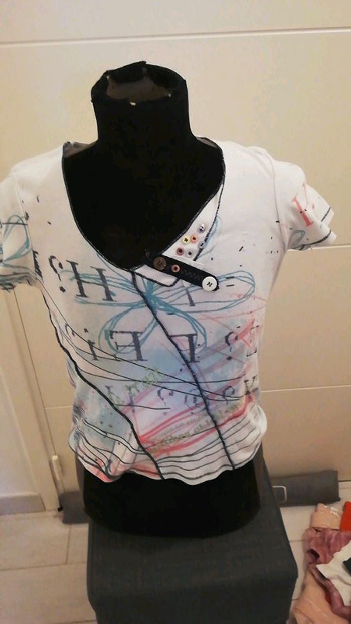 Tee shirt fantaisie multicolores porté 2 fois