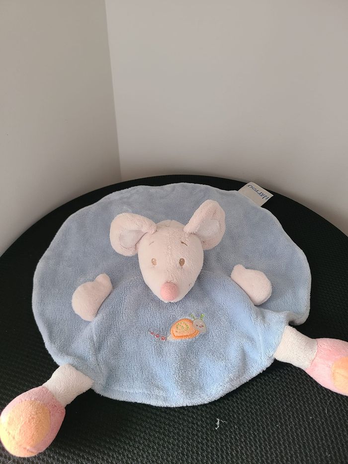 NATTOU DOUDOU SOURIS LUNA ECRU PLATE RONDE BLEU ESCARGOT 23