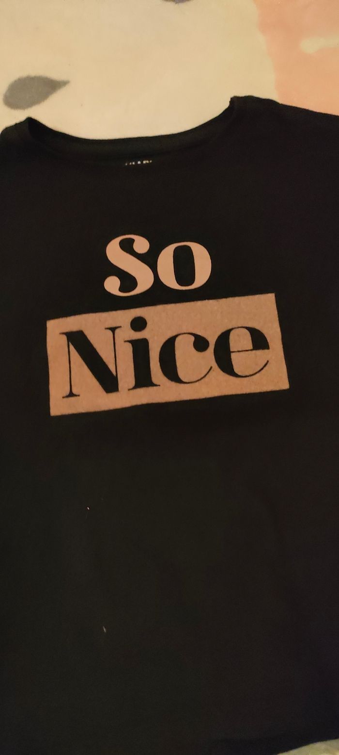 😻 Tee shirt / Sous pull fille 😻 Manches longues 😻 Écritures douces et imitation velours 😻 Marque Kiabi 😻 Taille 6 ans 😻 Très bon état