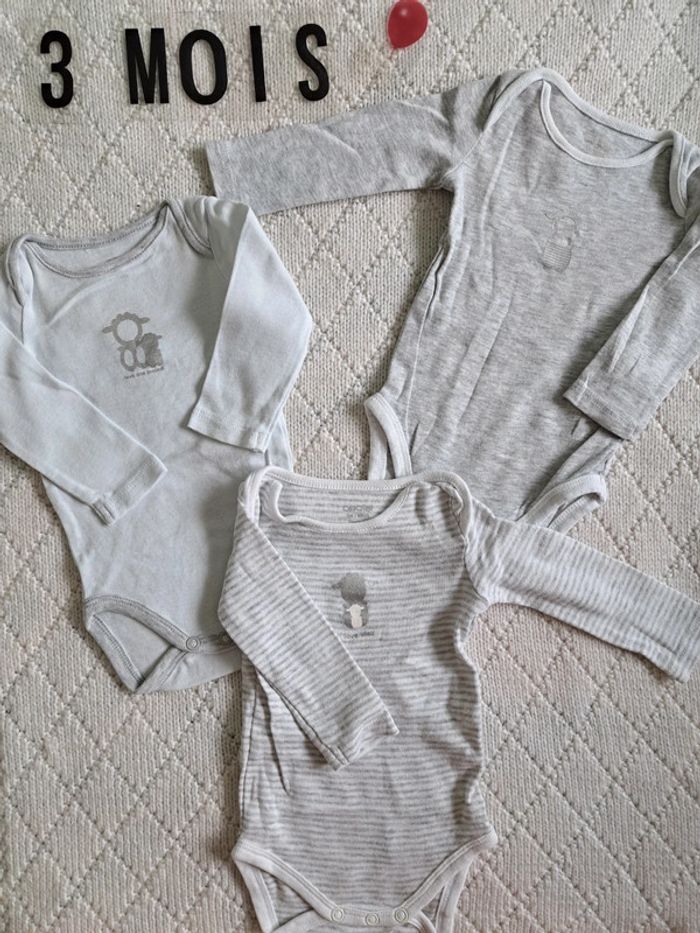 Lot de 3 bodies manches longues Obaïbi 3 mois - photo numéro 1