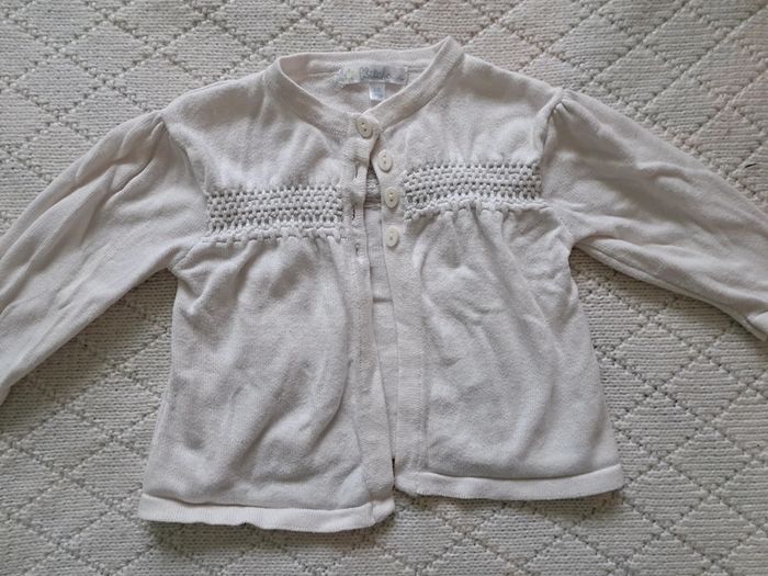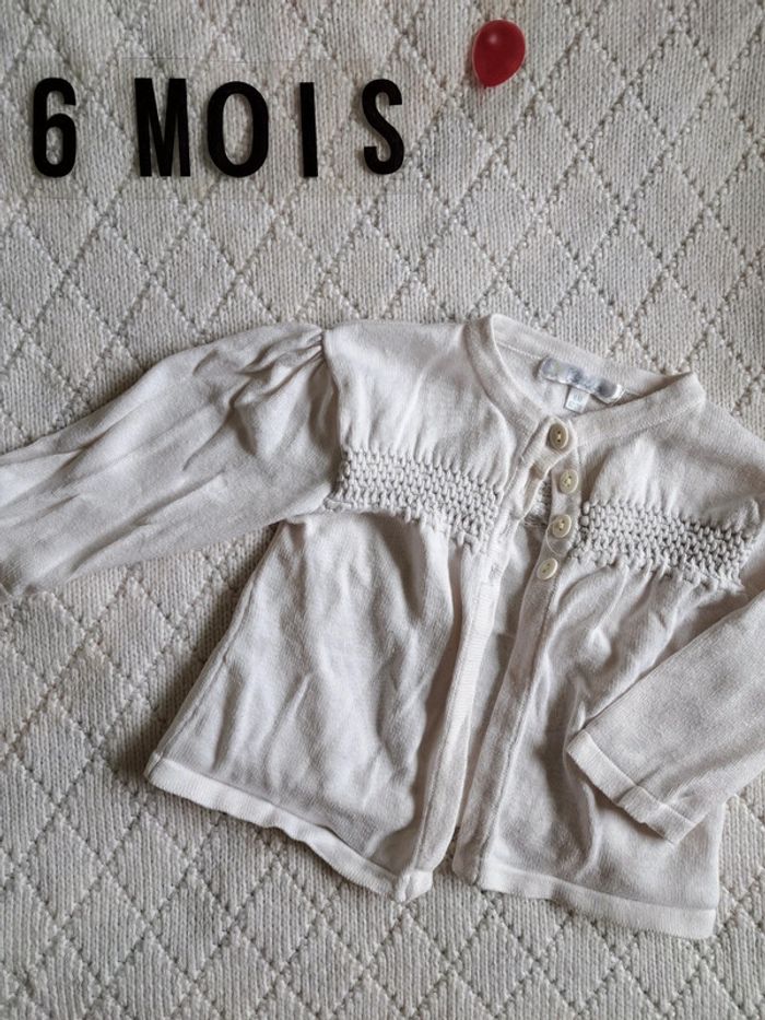 Vends Gilet léger manches longues blanc bande argentée 🌸 Taille 6 mois (67cm) 🌸 KITCHOUN 🌸 Très bon état #chabarre27_fille_T6mois #fille_6mois #kitchoun #gilet #manches_longues #blanc #argenté