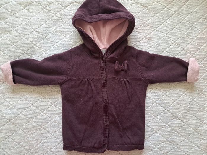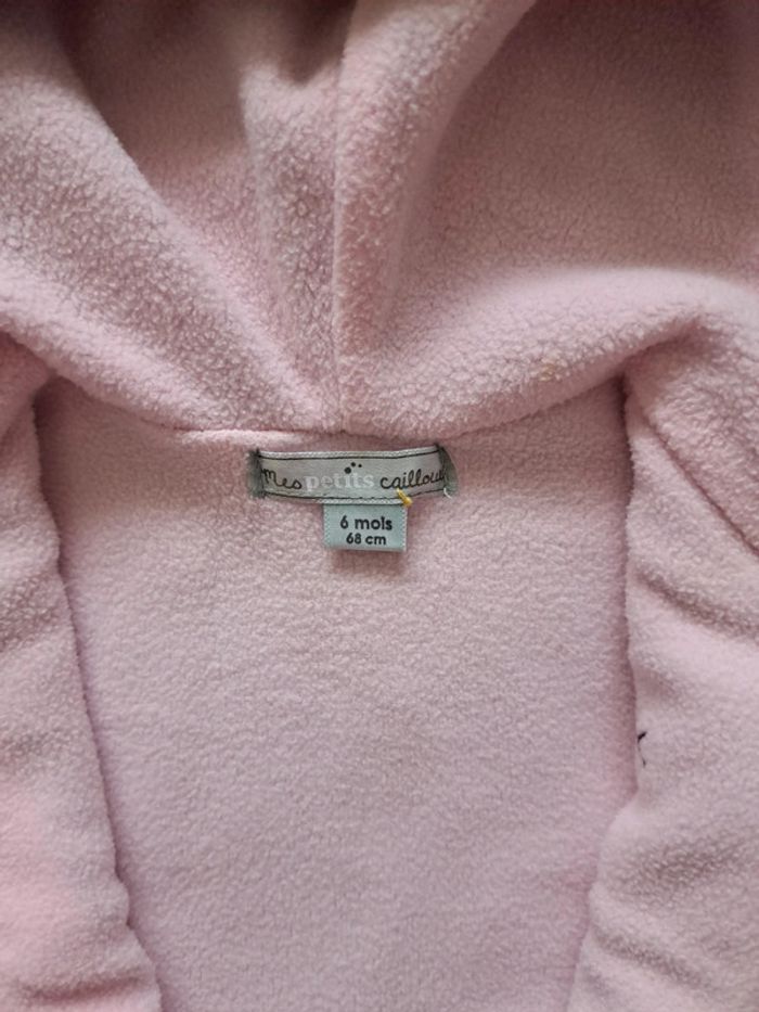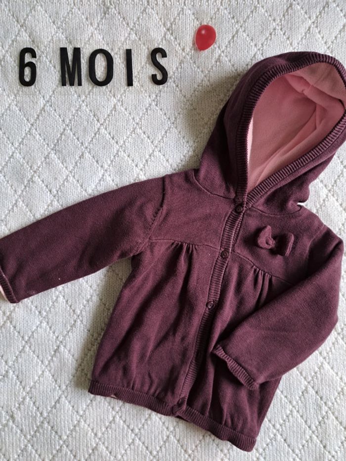 Vends cardian manches longues à capuche violet intérieur polaire rose pâle 🌸 Taille 6 mois 🌸 MES PETITS CAILLOUX 🌸 Bon état : petite tâche jaune à l'intérieur (voir photo) #chabarre27_fille_T6mois #fille_6mois #mespetitcailloux #cardigan #capuche #violet #rose_pale