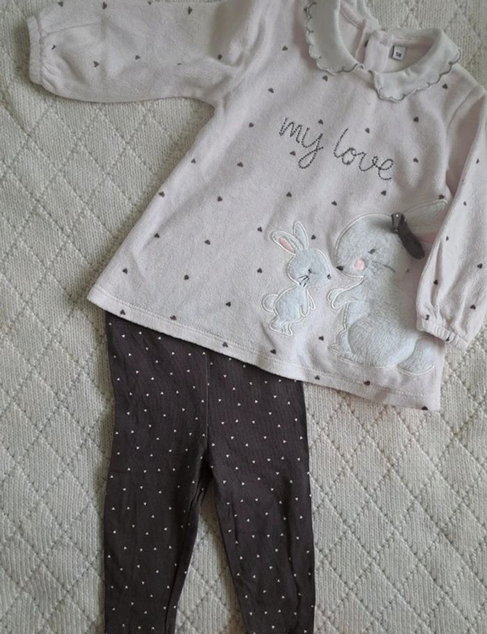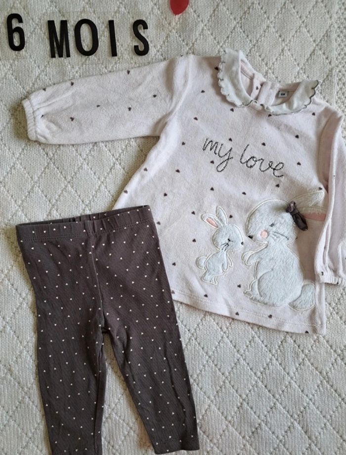 Ensemble Pull legging coeurs et lapin fille 6 mois - photo numéro 1