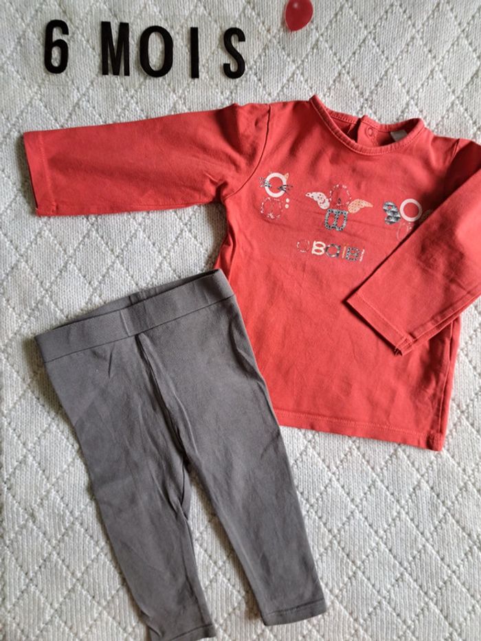 Ensemble t-shirt manches longues rouge + legging gris Obaïbi fille 6 mois - photo numéro 1