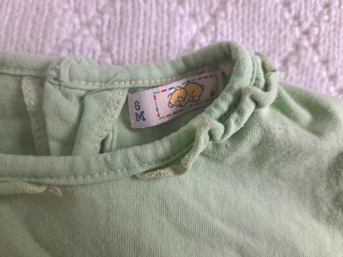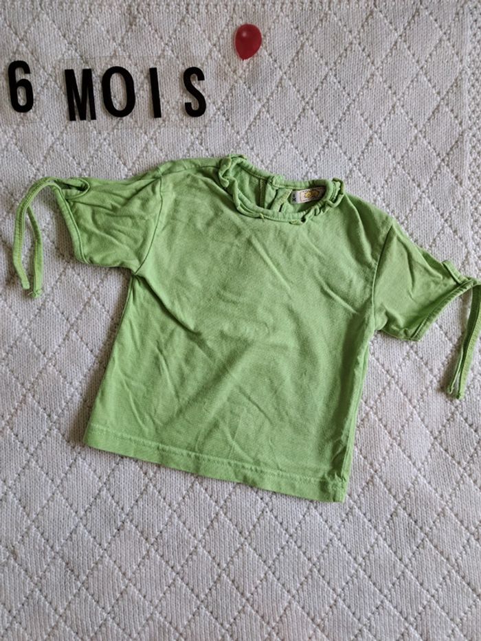 Vends t-shirt manches courtes vert clair 🌸 Taille 6 mois 🌸 Très bon état #chabarre27_fille_T6mois #fille_6mois #tshirt_manchescourtes