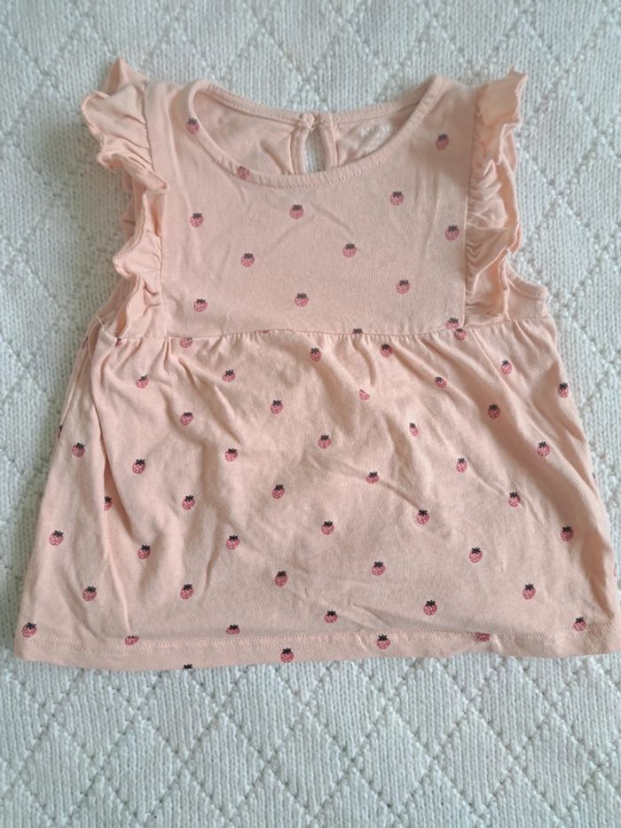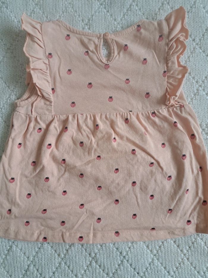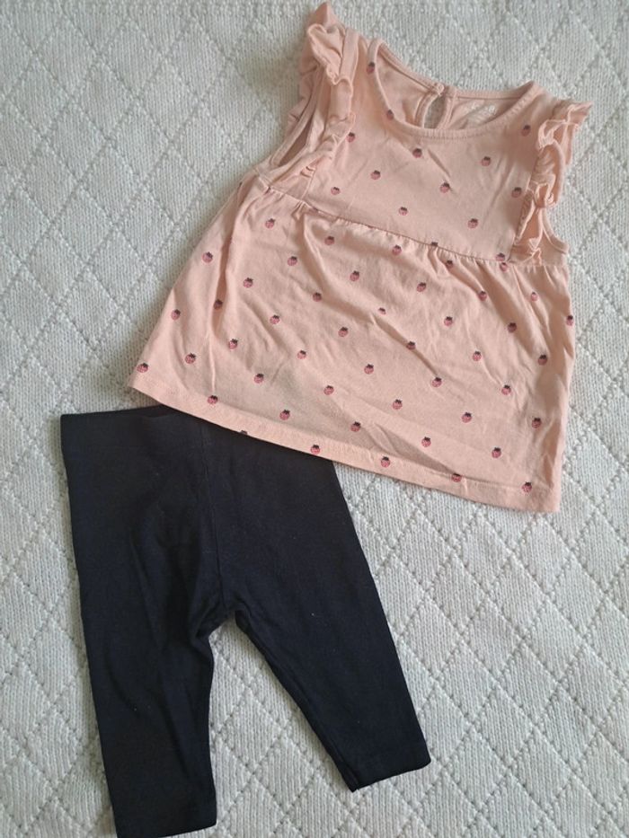 Vends ensemble tunique sans manches rose pâle motifs fraises et son legging bleu marine 🌸 Taille 6 mois (63-69cm) 🌸 KIABI 🌸 Très bon état #chabarre27_fille_T6mois #fille_6mois #kiabi #ensemble #tunique_sansmanches #rosepale #fraises #legging #marine