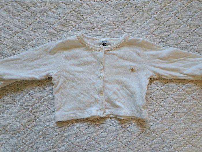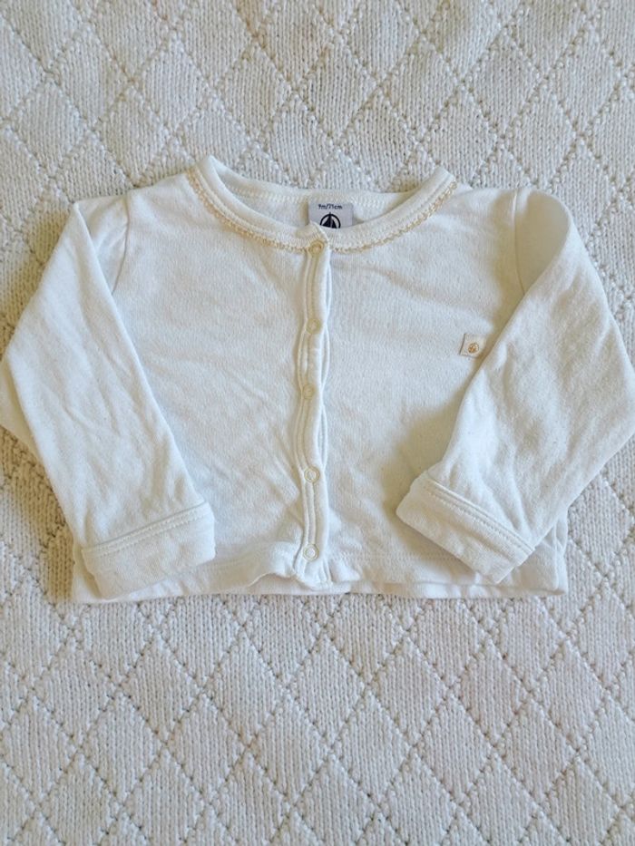 Gilet manches longues blanc/doré Petit Bateau fille 9 mois - photo numéro 1