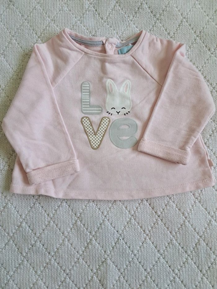 Vends pull manches longues rose pâle Love et tête de lapin 🌸 Taille 9 mois (71cm) 🌸 OBAÏBI 🌸 Très bon état #chabarre27_fille_T9mois #fille_9mois #obaibi #pull_mancheslongues #rose_pale #love #tete_lapin