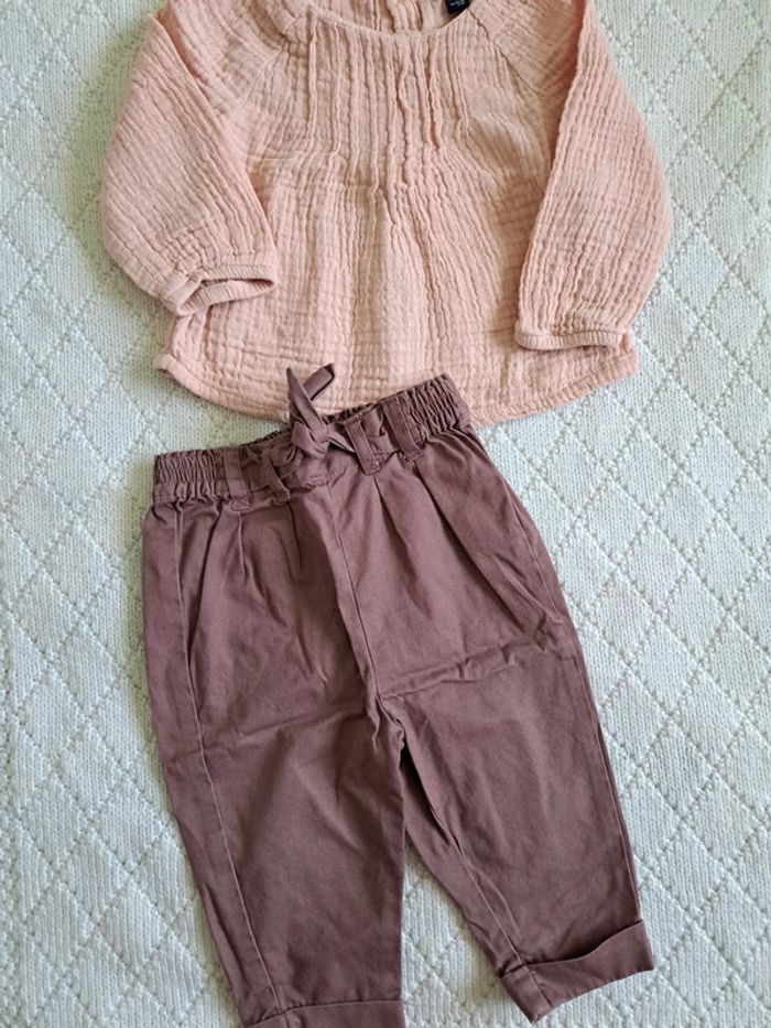 Vends ensemble Blouse manches longues vieux rose et son pantalon effet chino violine 🌸 Taille 9 mois (69-72cm) 🌸 KIABI 🌸 Très bon état #chabarre27_fille_T9mois #fille_9mois #ensemble #kiabi #blouse_mancheslongues #vieux_rose #pantalon_chino #violine
