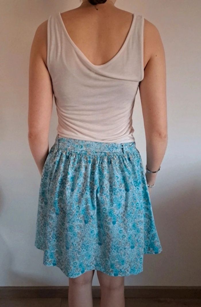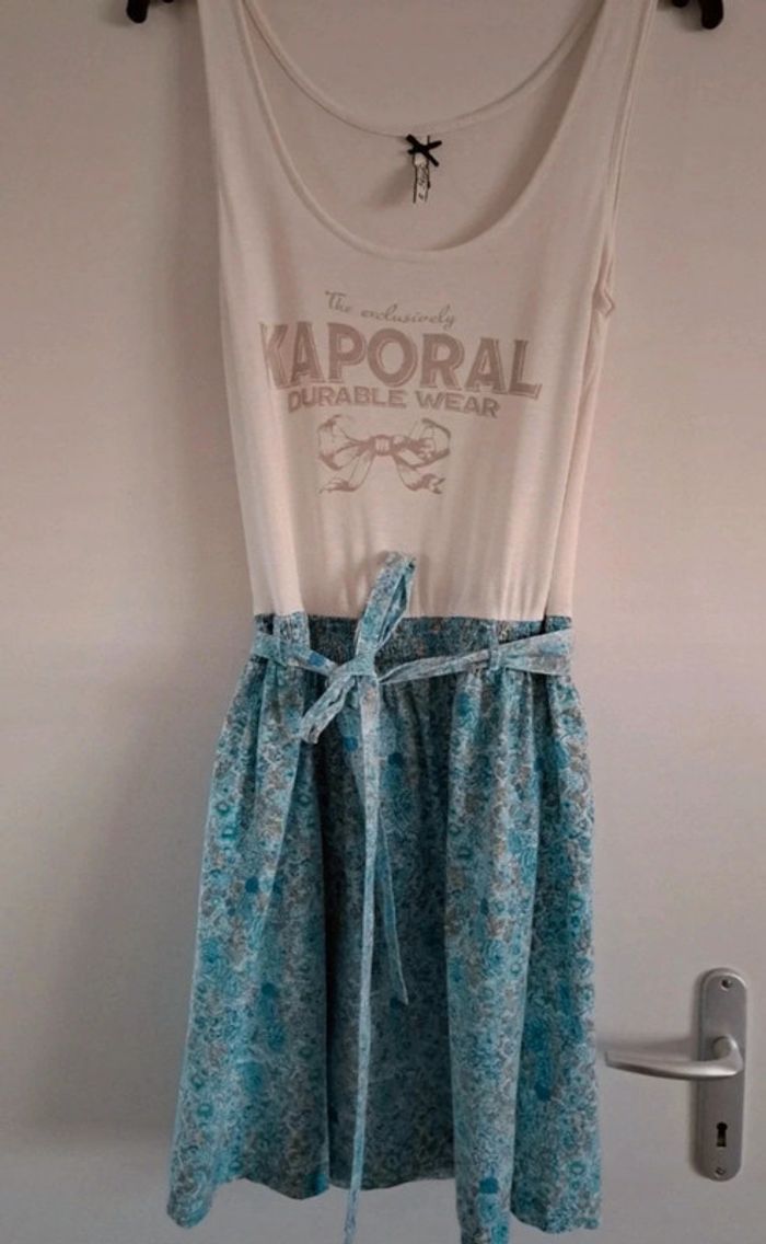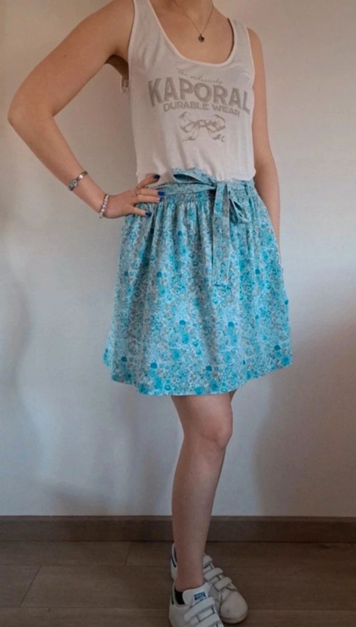 Vends Robe débardeur blanc ; jupe liberty bleu été 🌸 Taille M : Taille plutôt grand 🌸 KAPORAL 🌸 Élastique à la taille 🌸 Bon état : léger accro (voir photo 5) #chabarre27_femme_M #robe_été #femme #taille_m #liberty #blanc #bleu #kaporal_femme