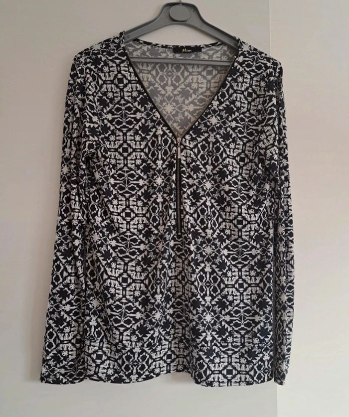 Blouse manches longues motifs blanc/noir Mim - photo numéro 1