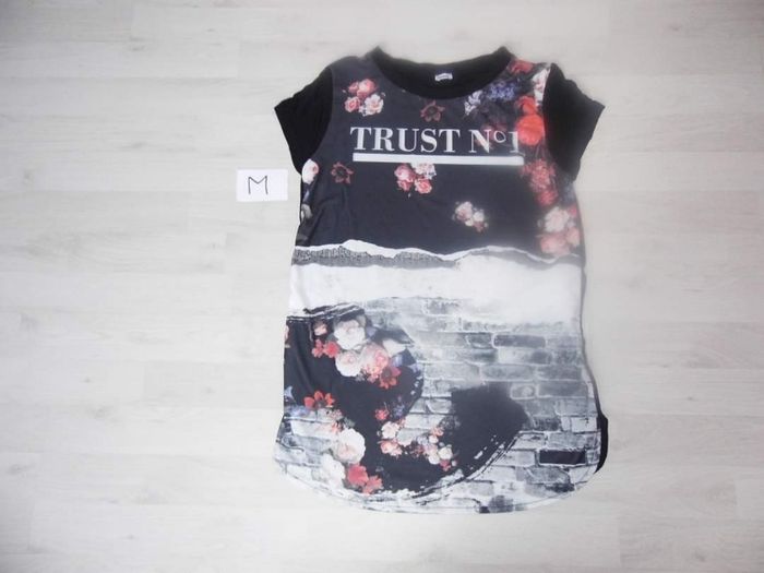 Bonjour 👋 Je vend ce : 👉 t-T-shirt femme " pimkie" taille M Couleur noir, blanc motif rose Maison 🏠 non fumeur et sans animaux