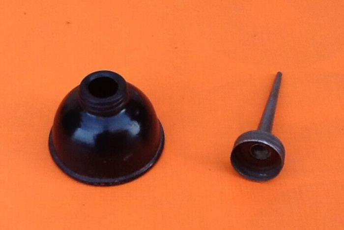 Burette ancienne à huile (atelier couture) Métal Hauteur : 100mm Diamètre : 50mm Poids : 25grs