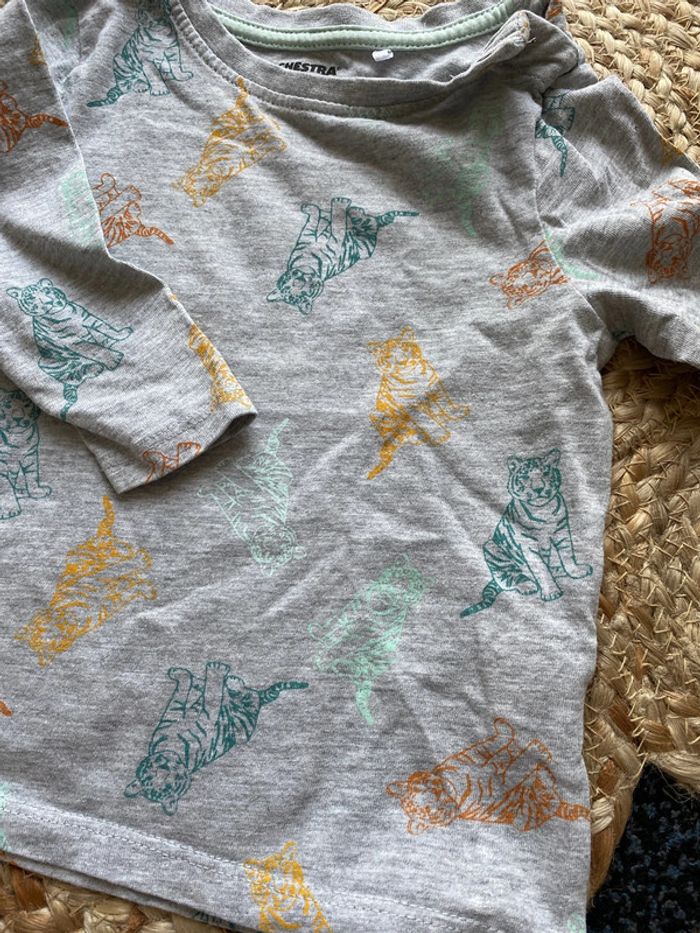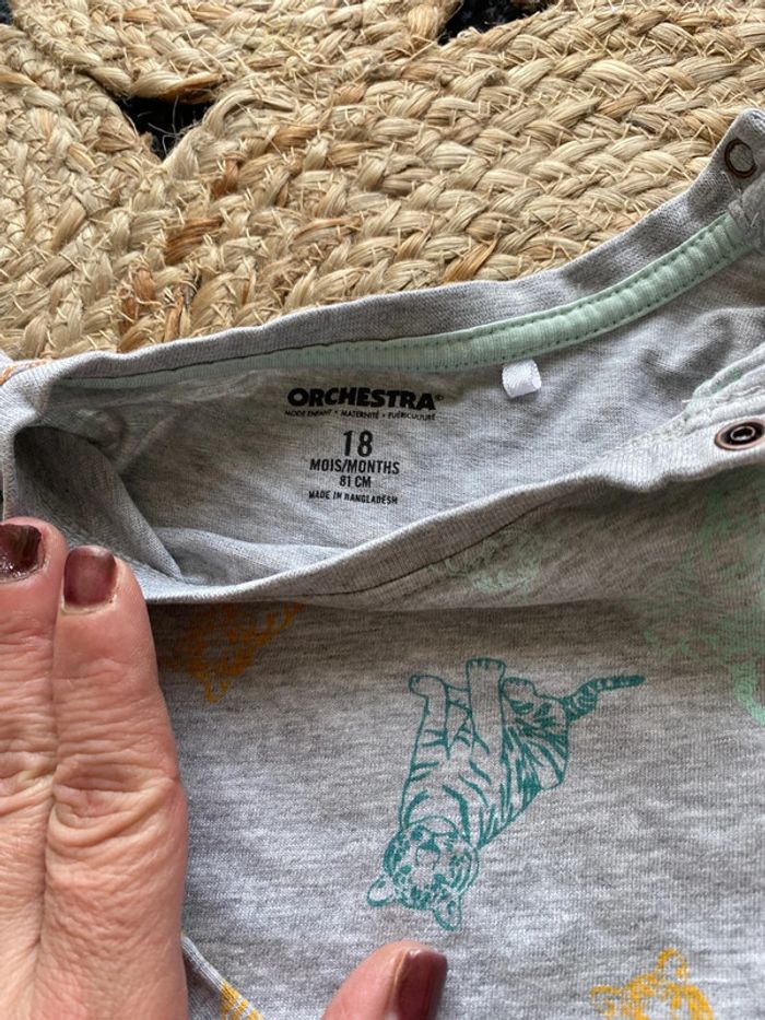 Porté quelques fois , tee shirt manche longue . Marque Orchestra . Joli tee shirt manche longue thème « jungle « .