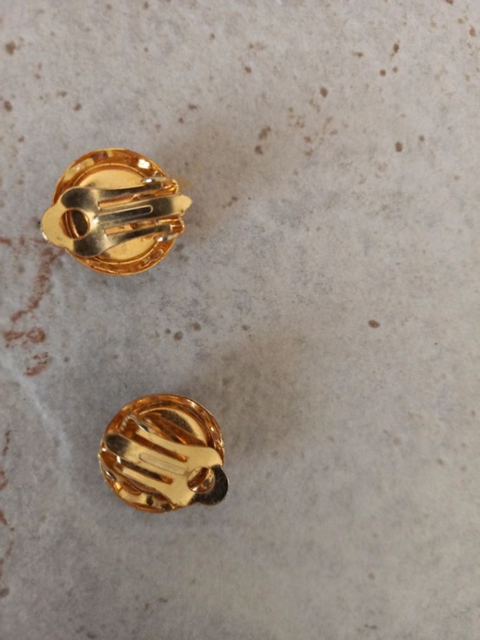 Boucle d oreilles rond perlé nacre vintage - photo numéro 2