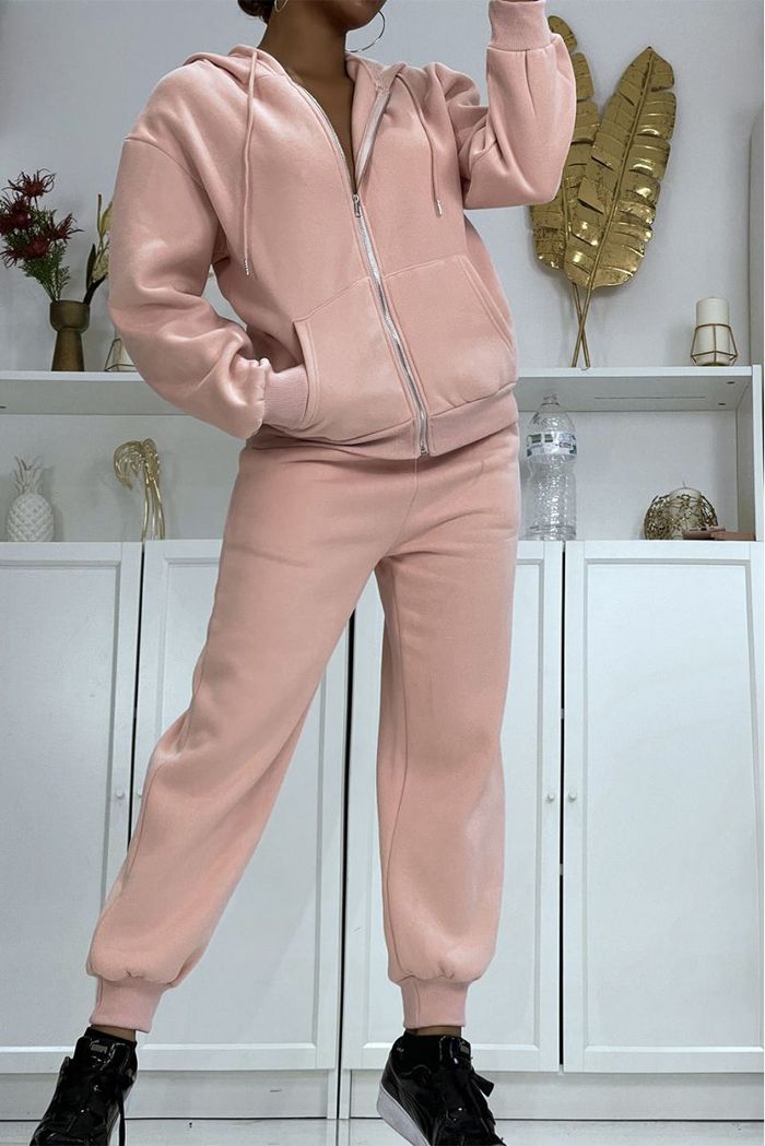 Ensemble 3 pièces doudoune sans manche rose avec sweat et jogging 100% Coton Taille L