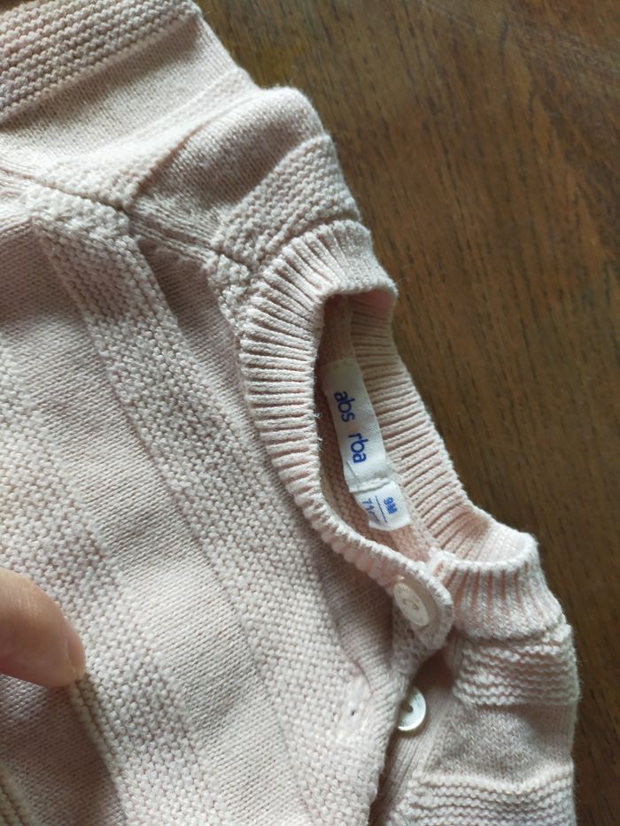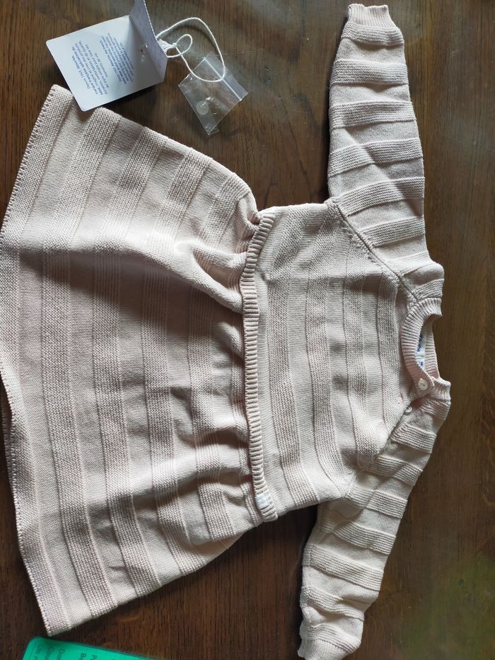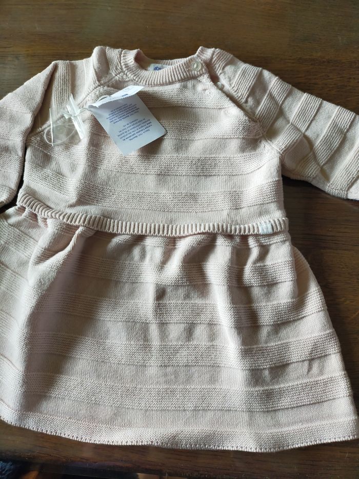 Couleur rose poudré, robe en tricot fin, très jolie, très belle qualité. Pas de défauts. Taille 9 mois