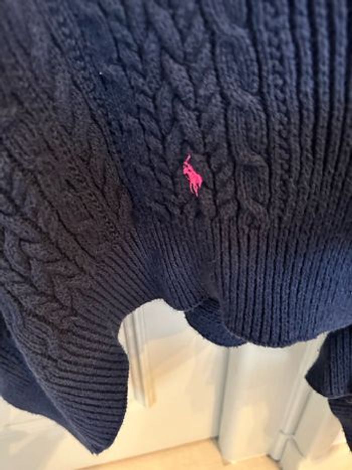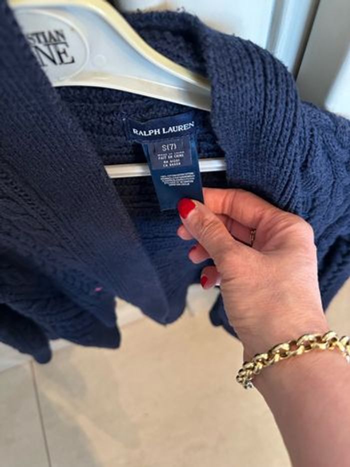 Gilet châle Ralph Lauren de couleur bleu marine et torsadé Taille 7 ans Pour fille