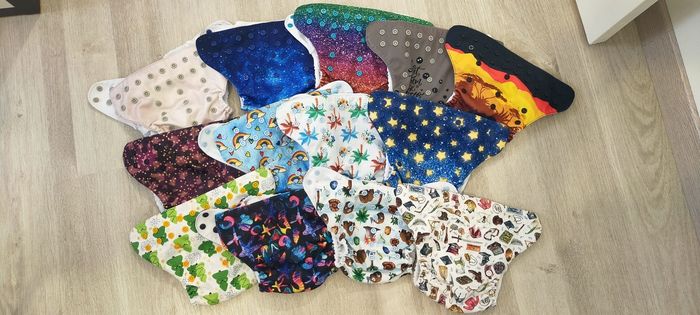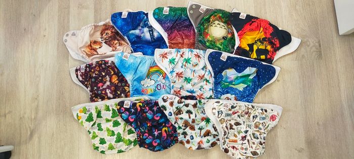 Couches évolutives de la marque Mama Koala dont le PUL est abîmé (voir photo 3), donc non imperméables. Idéal pour la piscine ou une poupée. 1€ pièce Photos individuelles sur demande