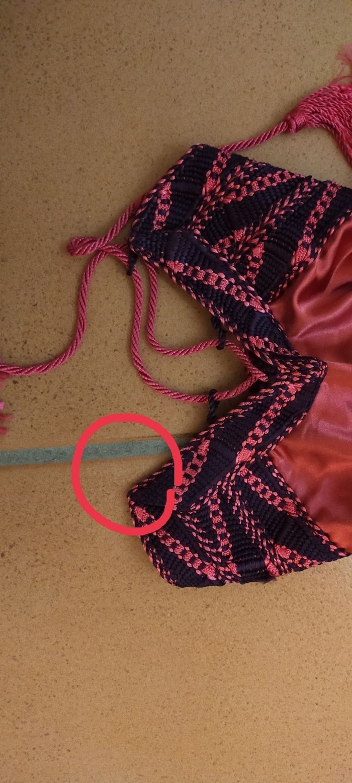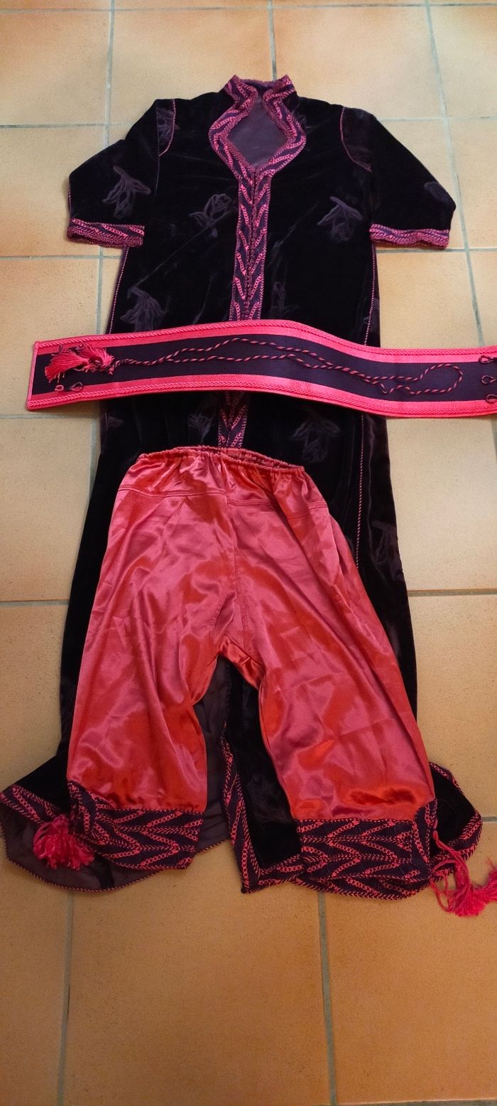 Caftan velours, comme neuf Taille 38-40 Petit défaut au niveau d'un côté du pantalon, il manque de quoi faire passer le cordon pour serrer (voir dernière photo).