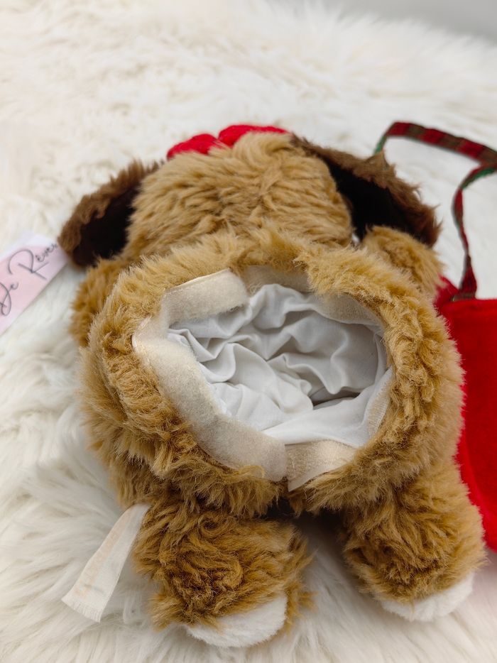 Peluche chien marron et blanc casquette, dans sac rouge et vert Noël  Vintage - photo numéro 6