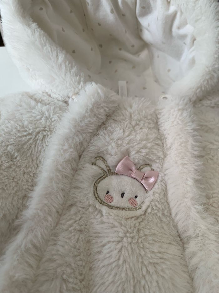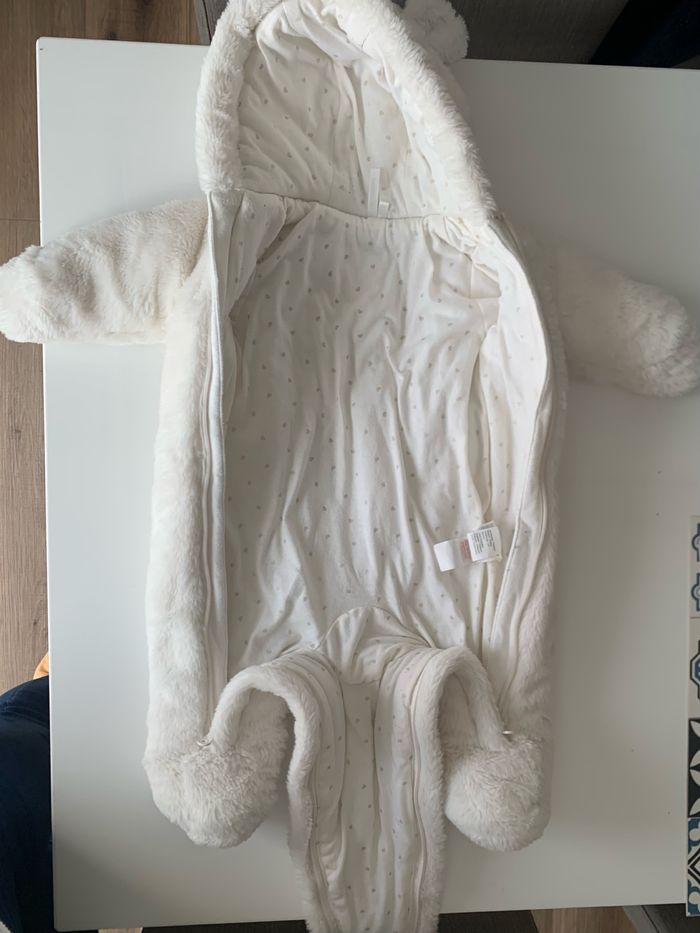 Très bon état, peu portée, parfait pour les bébés d’hiver. Polyester à l’extérieur et coton à l’intérieur Envoi rapide et soigné