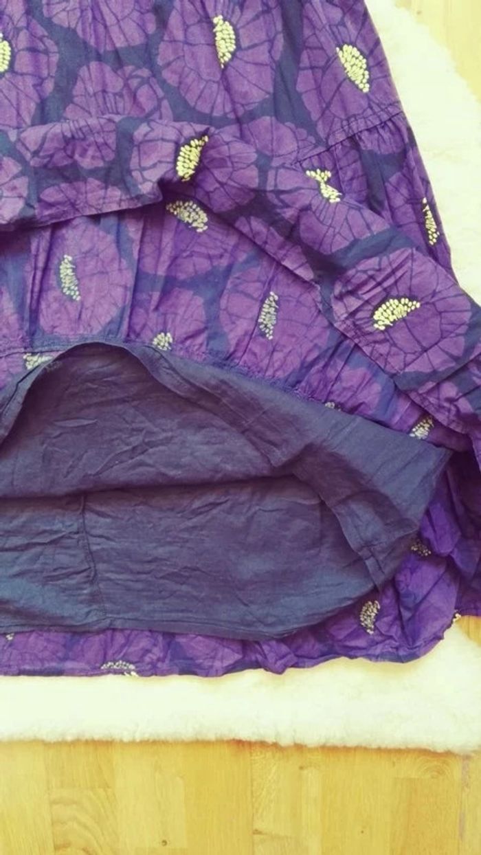 Robe violette à fleurs pistil jaune, évasée, type japonaise - photo numéro 5