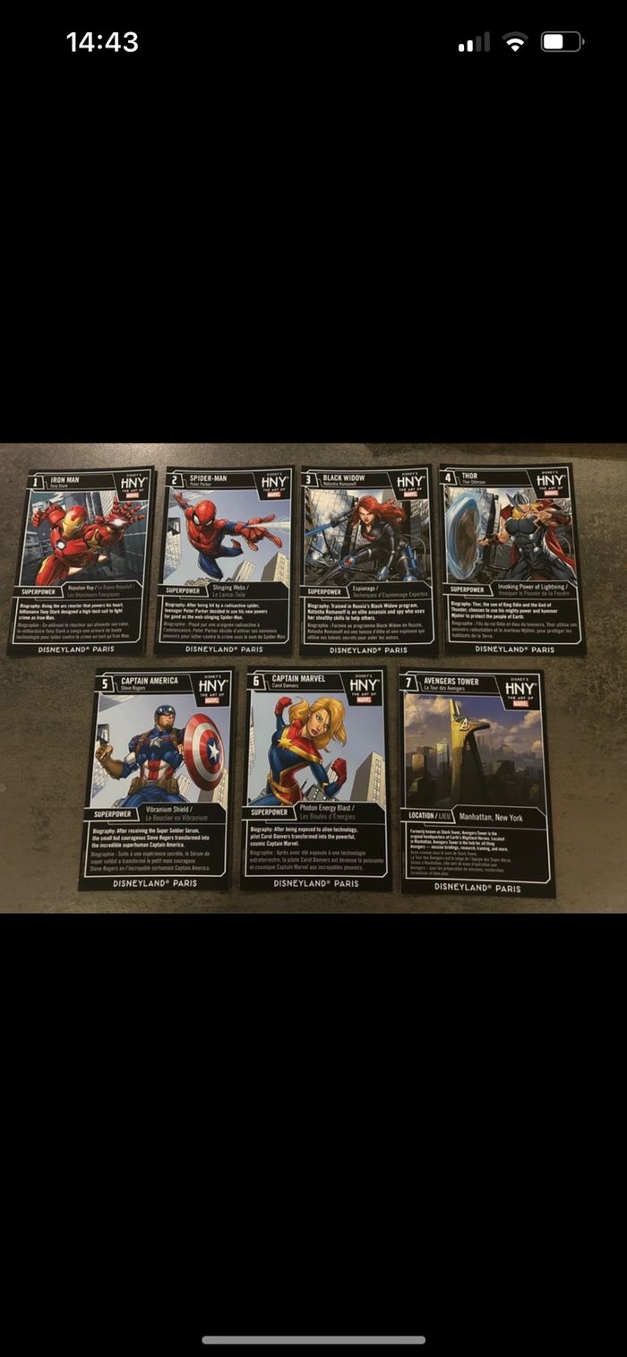 Lot de 7 cartes Marvel Disney Disneyland Hôtel New York