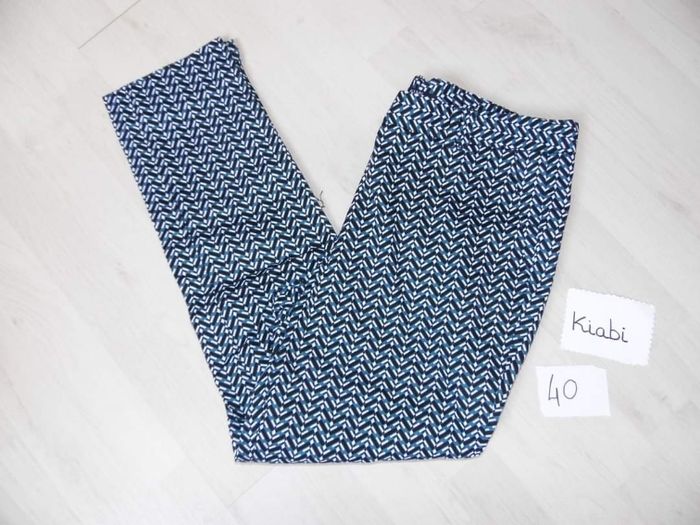 Bonjour 👋 Je vend ce : 👉 pantalon femme kiabi taille 40 Couleur bleu à motif Mis deux fois très jolie portée Maison 🏠 non fumeur et sans animaux
