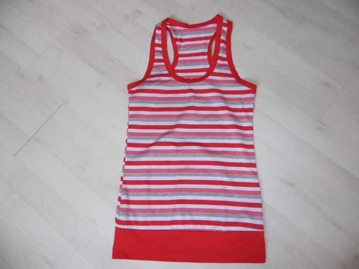 Bonjour 👋 Je vend ce : 👉 débardeur femme taille 38 Couleur blanc et rouge à rayure - un peu bouloché Maison 🏠 non fumeur et sans animaux