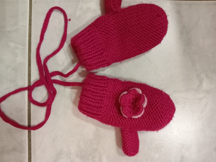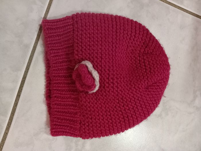Ensemble bonnet et moufles doublés polaires en 12 /24 mois 49 cm Jolie fleur brodée