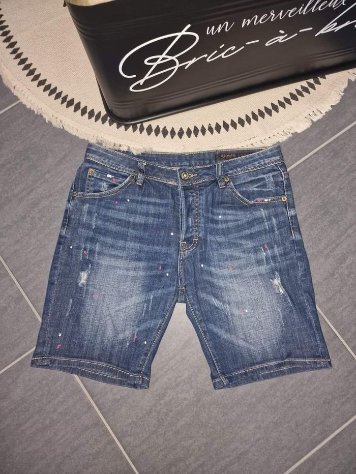 Bonjour 👋 Je vend ce : 👉 short destroye femme taille M - Couleur bleu destroye avec point de couleur Maison 🏠 non fumeur et sans animaux