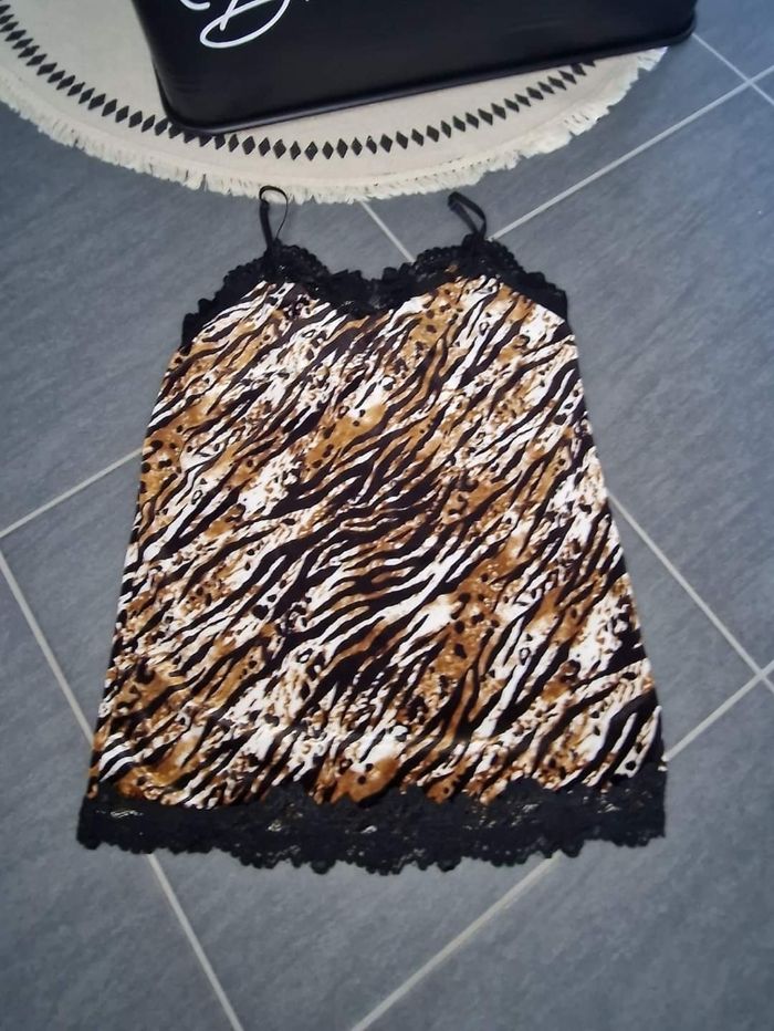 Bonjour 👋 Je vend ce : 👉 débardeur leopard femme taille 38 - Couleur marron, blanc, noir Maison 🏠 non fumeur et sans animaux